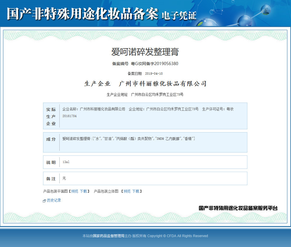 Номер записи для неспециальной косметики: