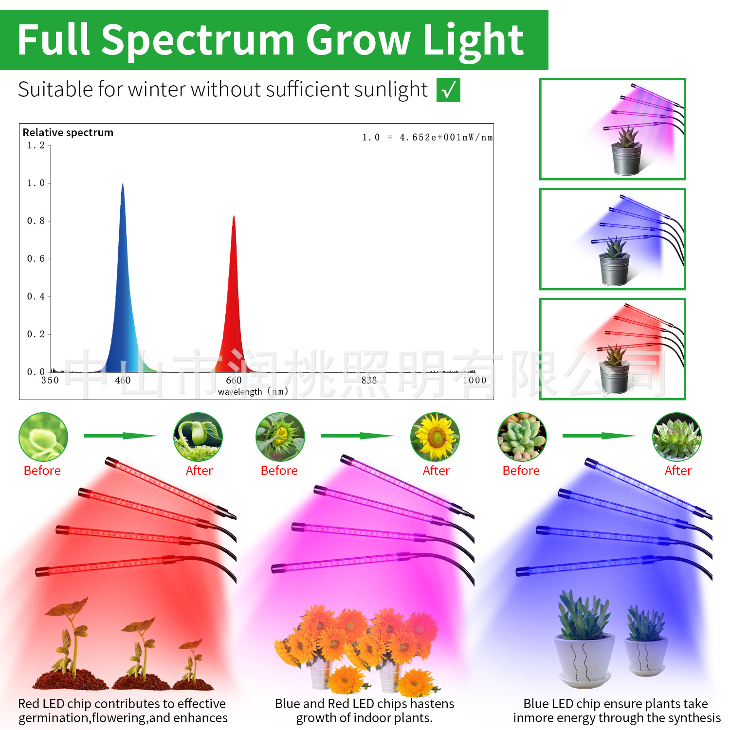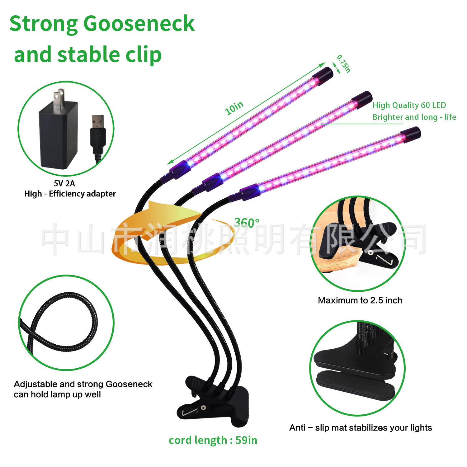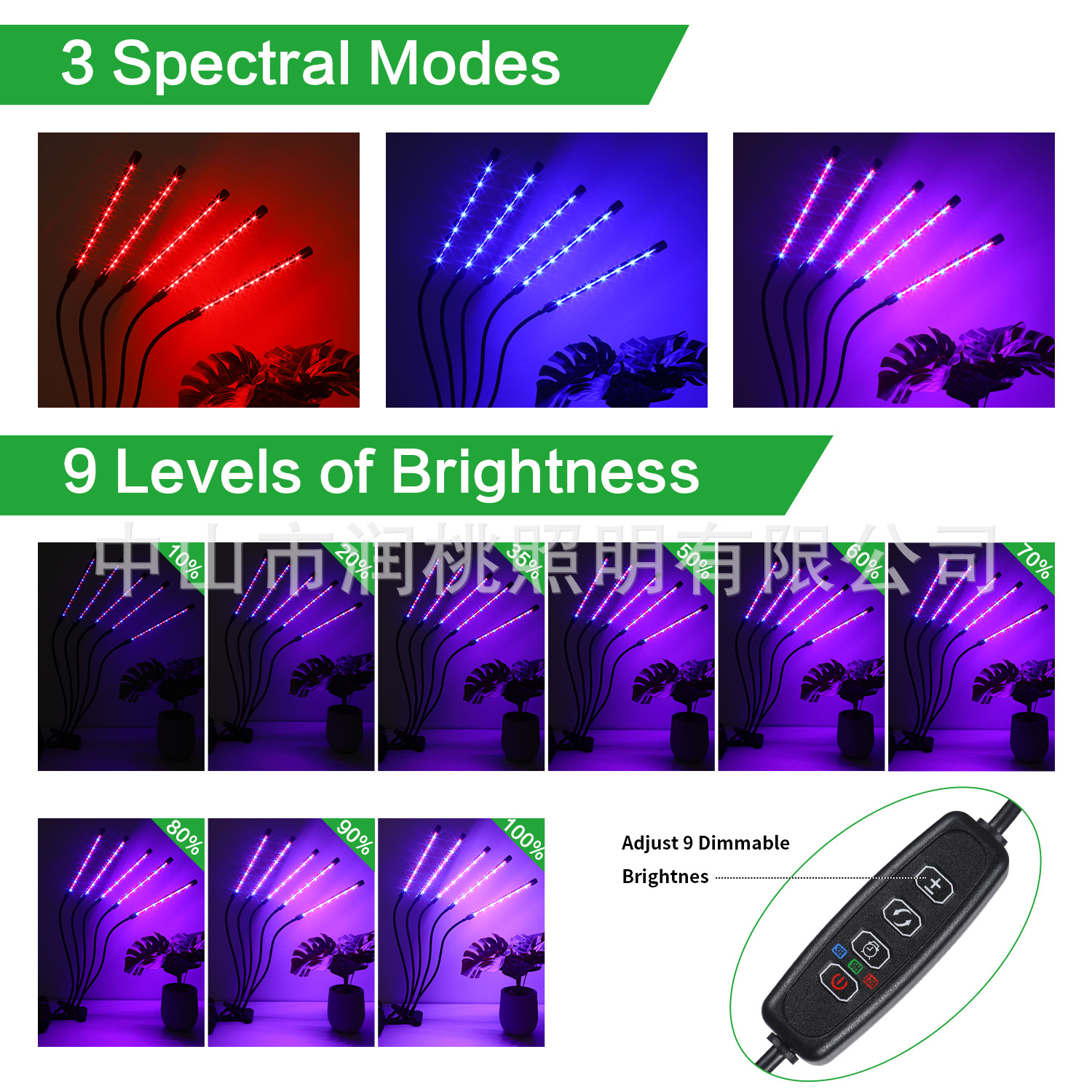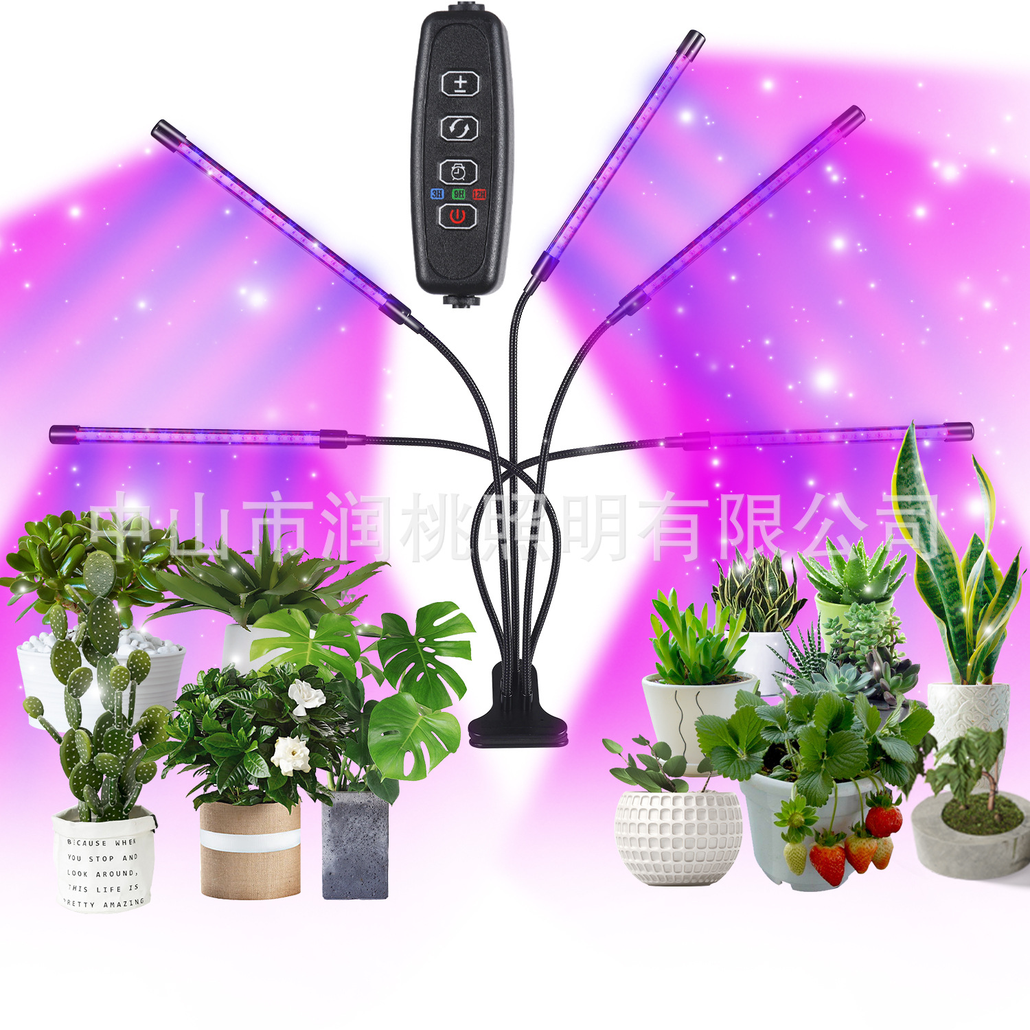 Лампа для растений, полный спектр, 1-5 головной зажим, сочный цветной цикл, затемнение по времени, красный и синий свет, сочный дополнительный свет, светодиодный