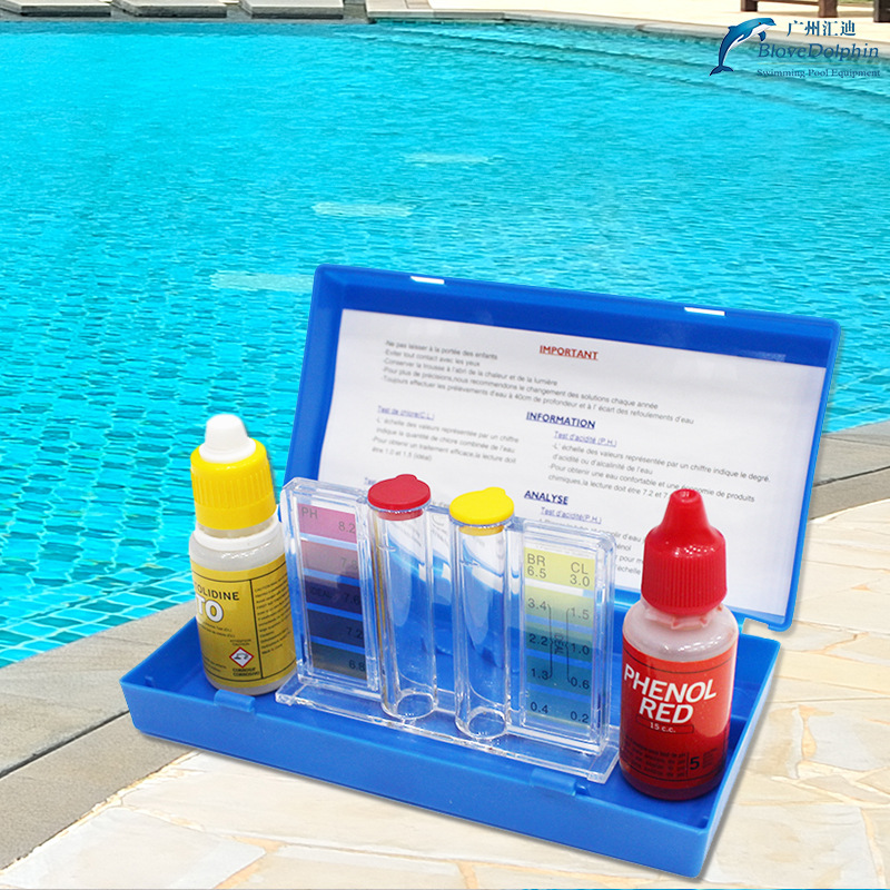 Набор реагентов для тестирования качества воды в бассейне, определения уровня pH, остаточного хлора, кислотности и щелочности воды.