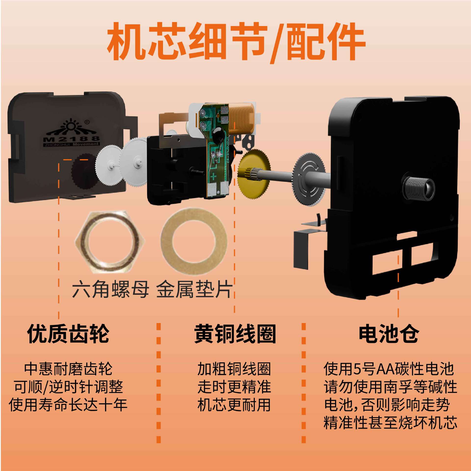 Кварцевый часовой механизм Xinli Zhu M2188D с прыгающими секундами, высокоточный, с высоким крутящим моментом, для трансграничного экспорта, с длинными стрелками.