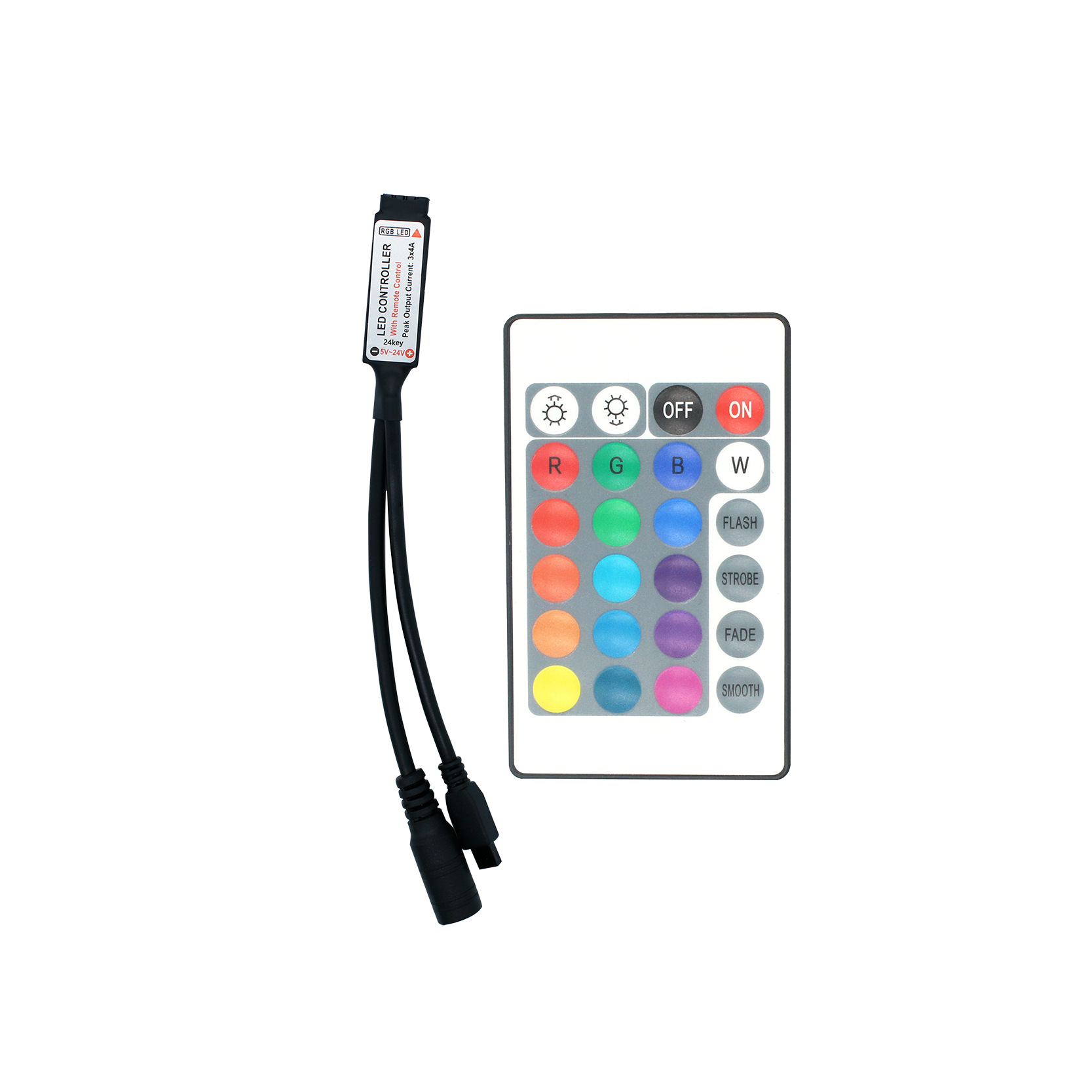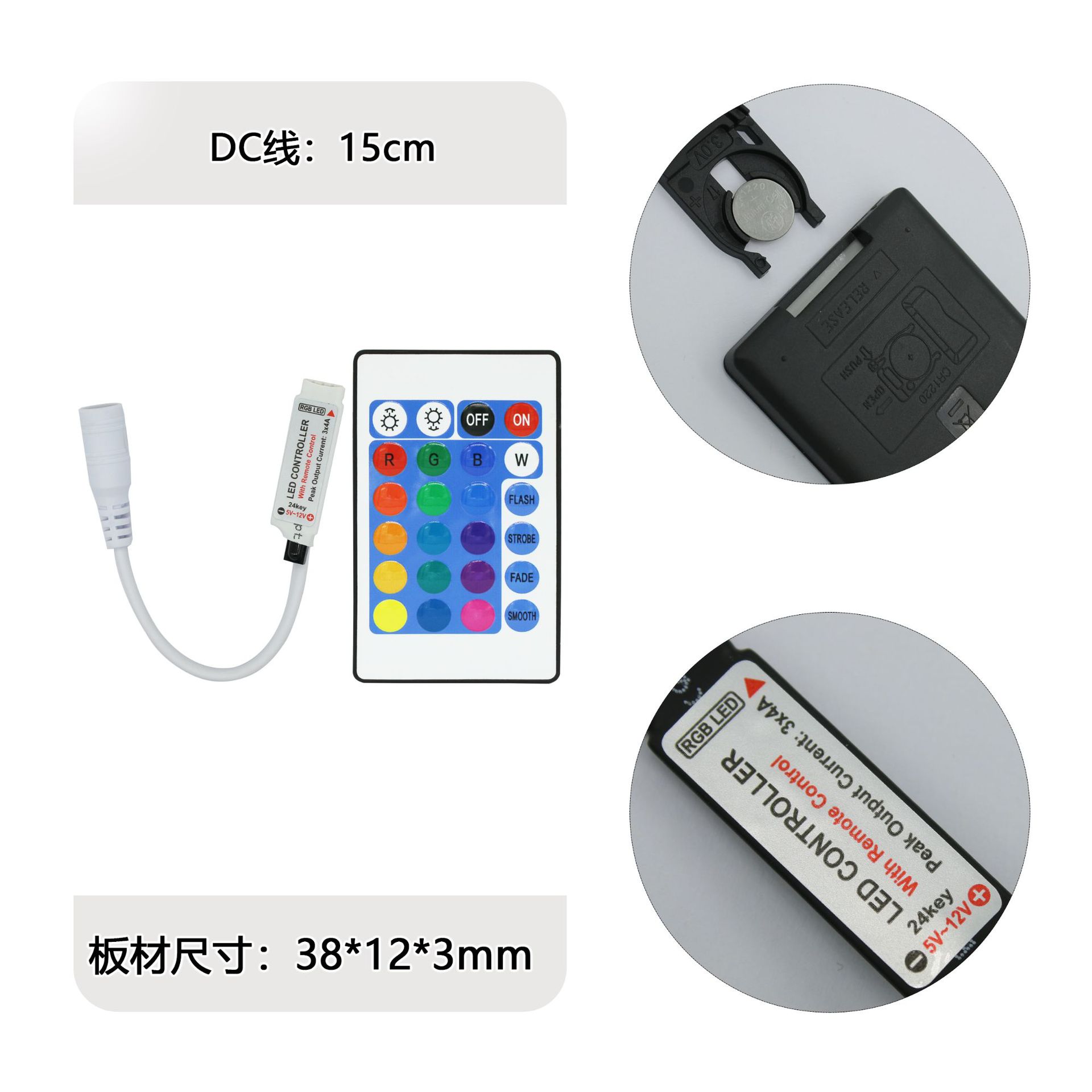 24 клавиши инфракрасный DC небольшой аккумулятор пульт дистанционного управления; 24 клавиши инфракрасный DC большой аккумулятор пульт дистанционного управления; 24-клавишная розетка постоянного тока, белая, большая батарея; 24-клавишная розетка постоянного тока, черная, большая батарея