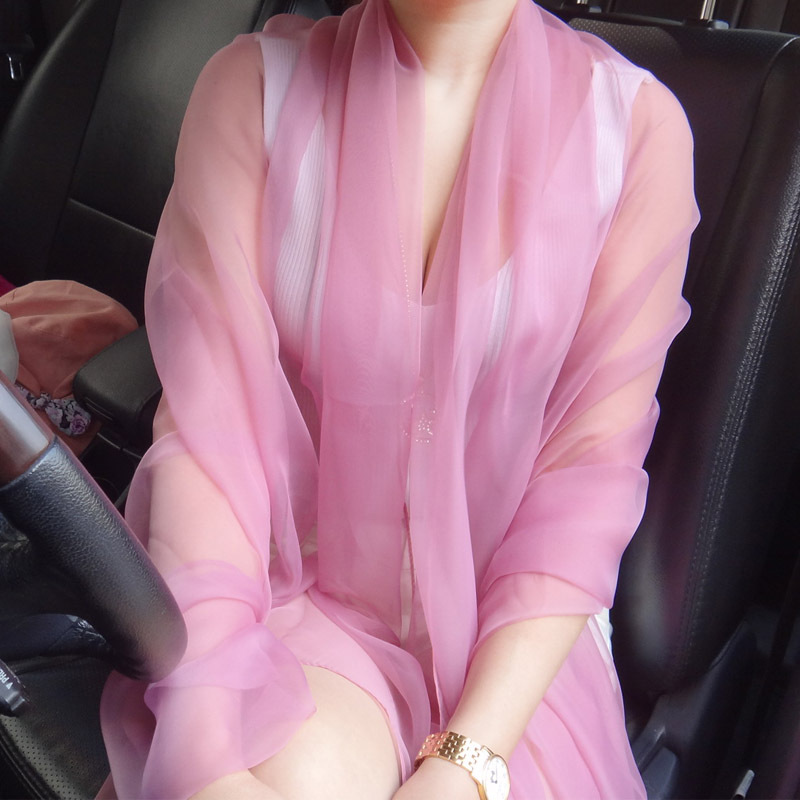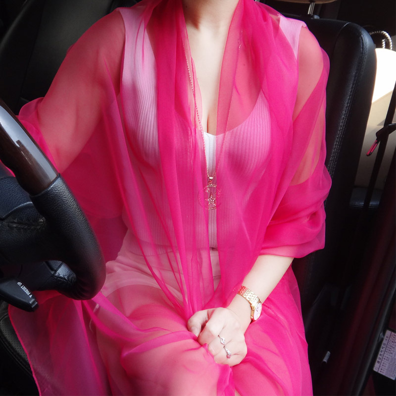 Ультратонкий летний ледяной Шелковый шифоновый женский шелковый шарф в Корейском стиле, шаль с кондиционером, солнцезащитный шарф, Приморский шарф, Осенний шелковый шарф для танцев
