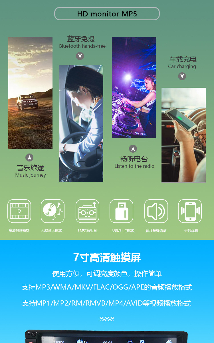 7-дюймовый большой экран Автомобильный MP5 плеер карта U диск Android Apple интернет Bluetooth Громкая связь реверсивное изображение