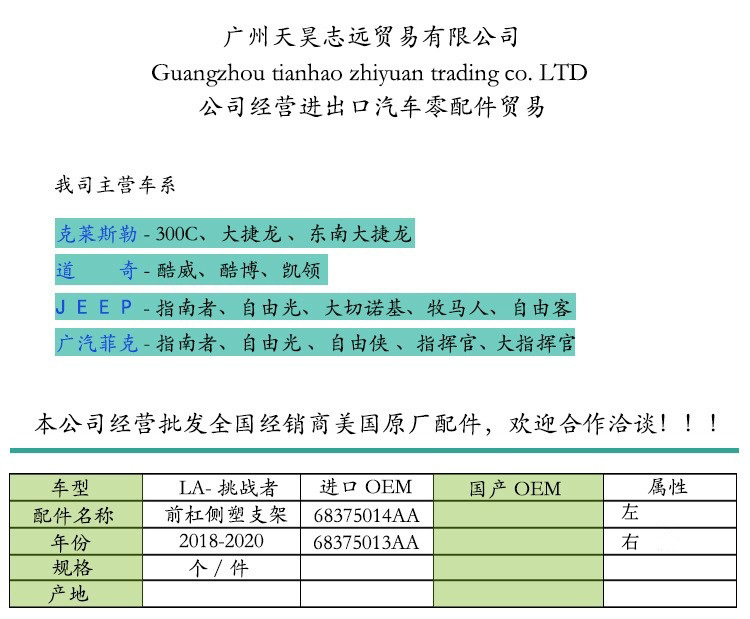 Подходит для бокового пластикового кронштейна переднего бампера DODGE CHALLENGER 68375013AA 68375014AA