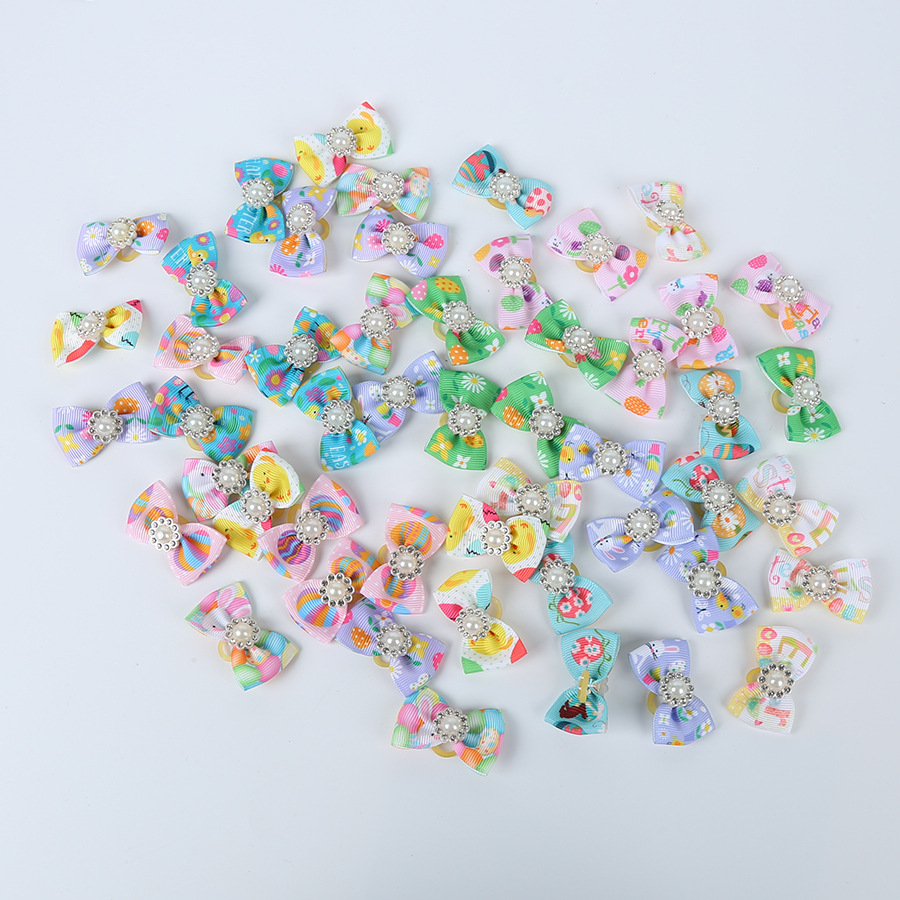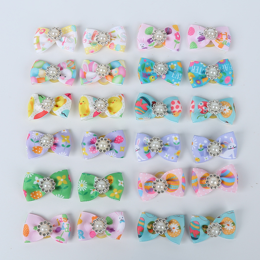 Товары для домашних животных Голова питомца Цветок резиновый сухожильный лук Пасхальные аксессуары для собак Лук для домашних животных Резиновый сухожилие Голова цветок