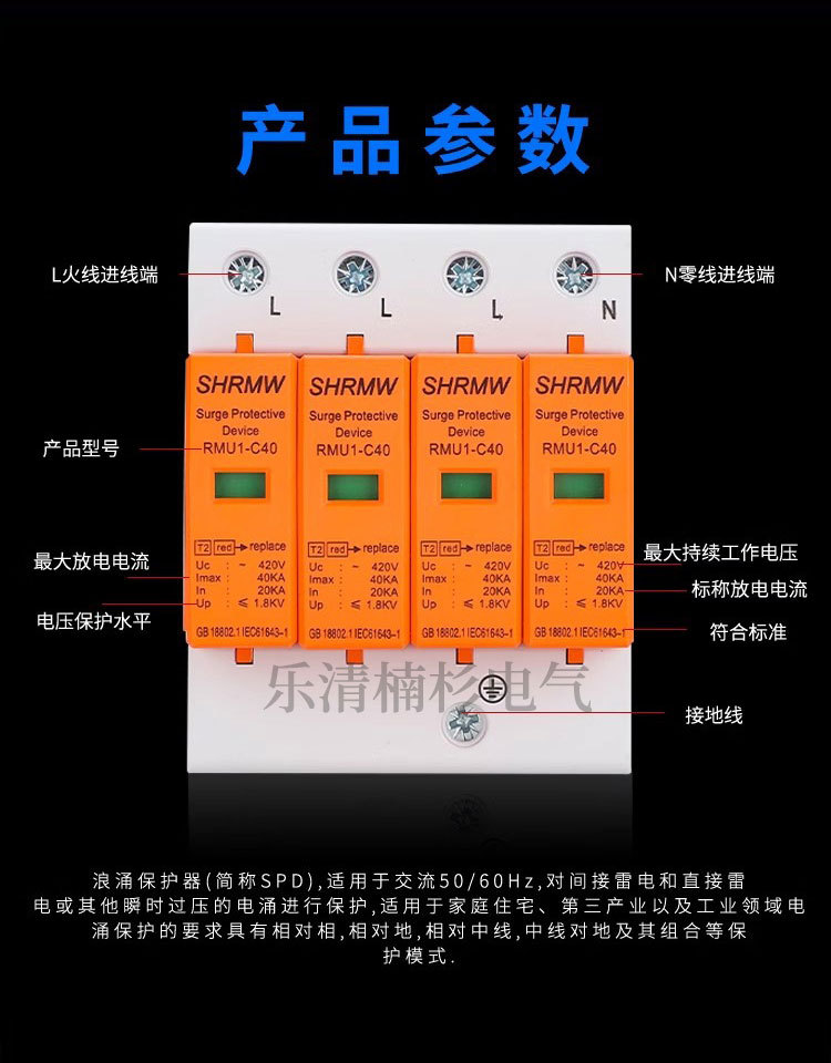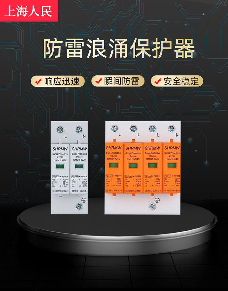 Шанхайская Народная Защита от перенапряжений 4P Блок питания 2P Модуль молниезащиты дома 220V Переключатель разрядник перенапряжения
