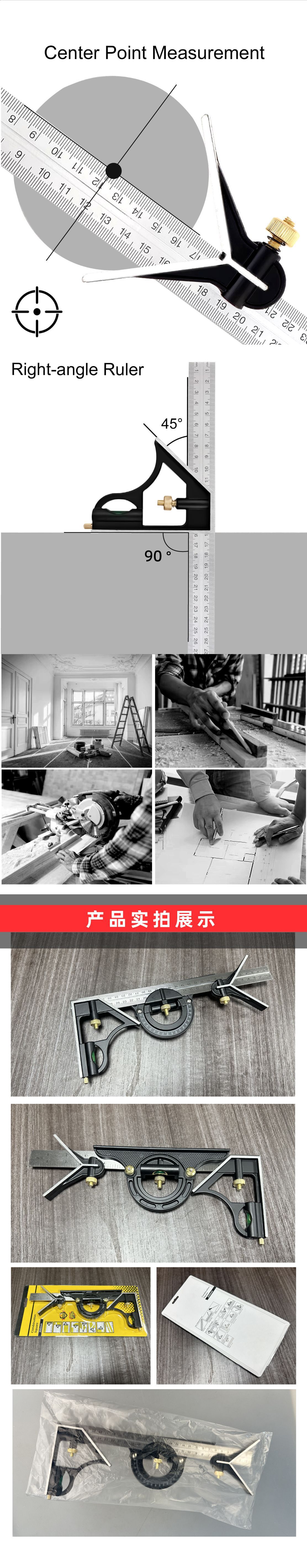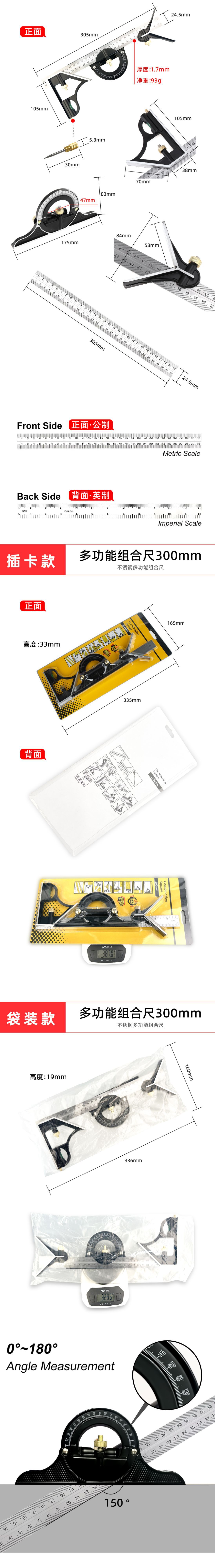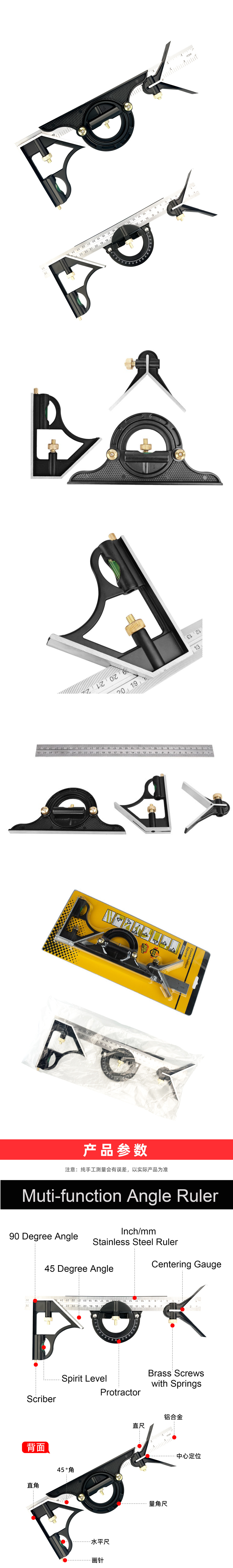 Горизонтальная подвижная угловая линейка из нержавеющей стали Мобильная комбинированная угловая линейка гражданский измерительный инструмент 300 мм Регулируемая линейка