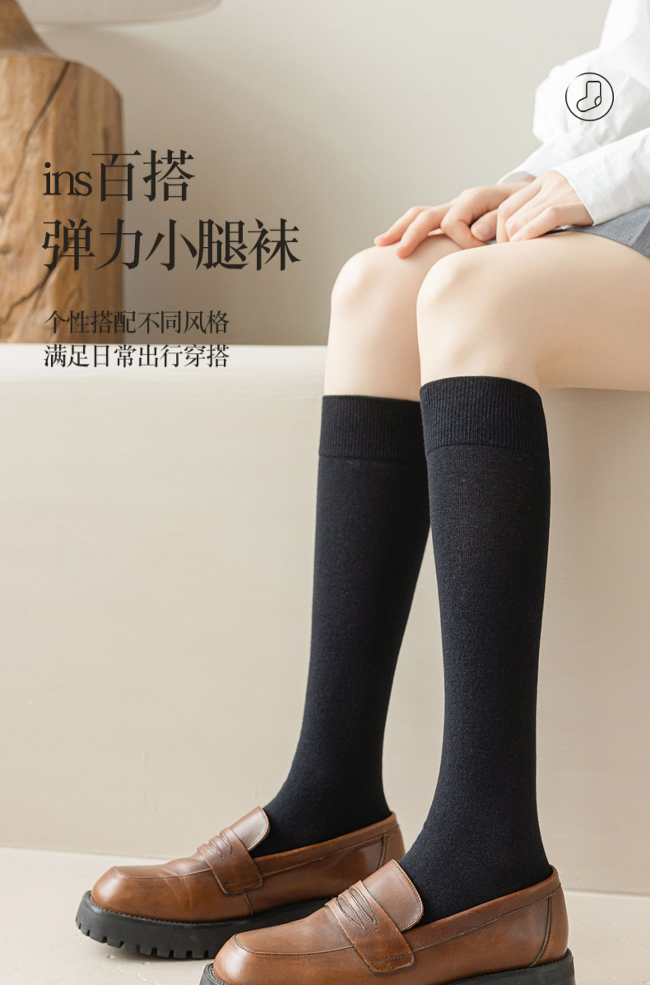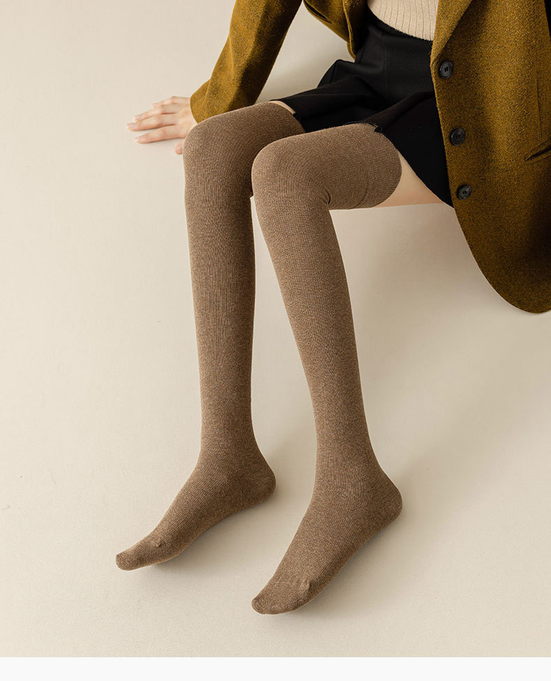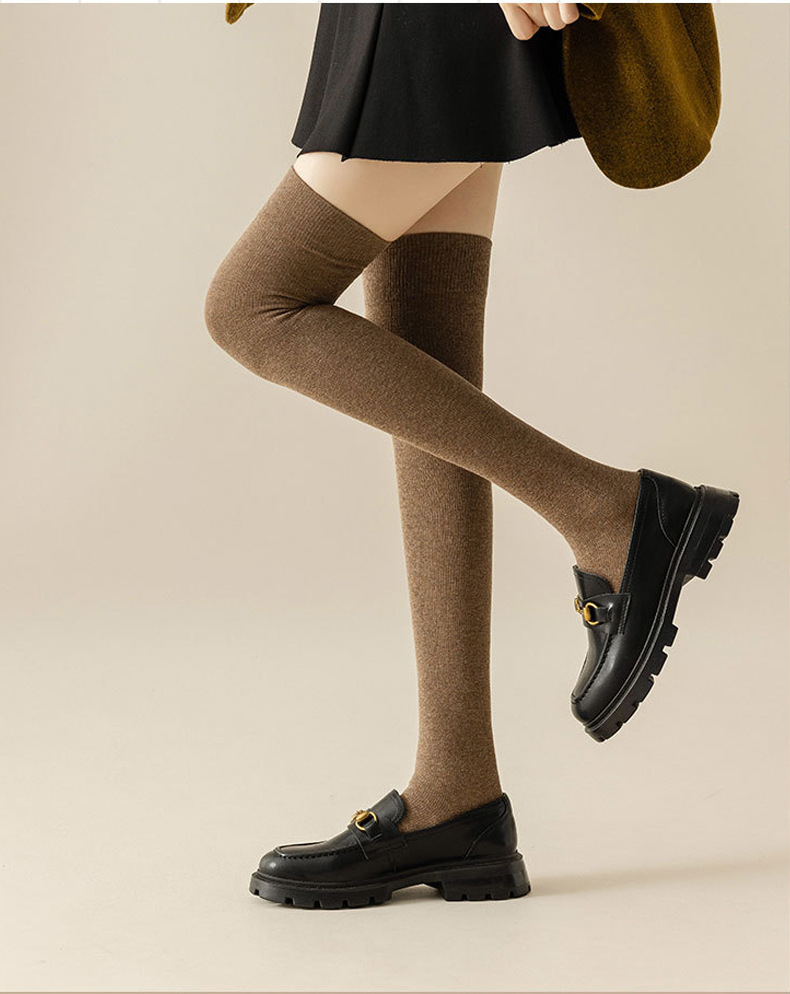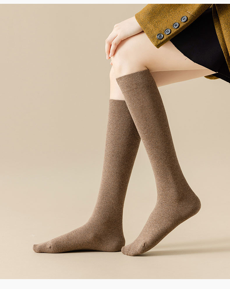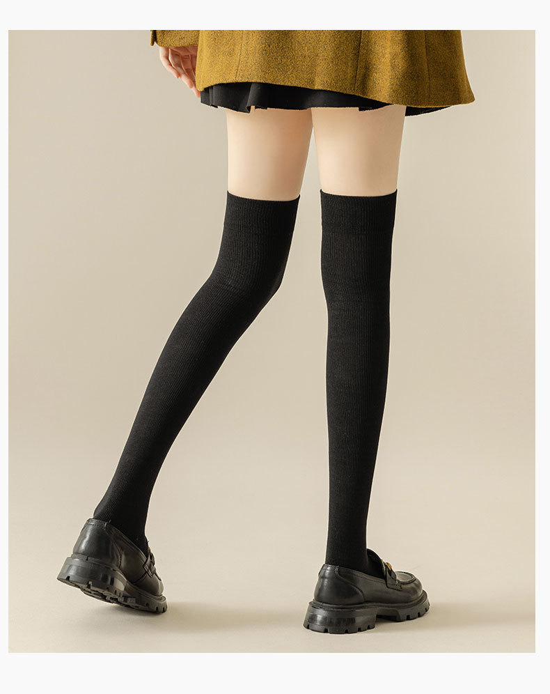 Теплые осенне-зимние женские носки-гольфы в японском стиле, мягкие высокие носки выше колена, универсальный стиль, для лоферов, однотонные длинные носки