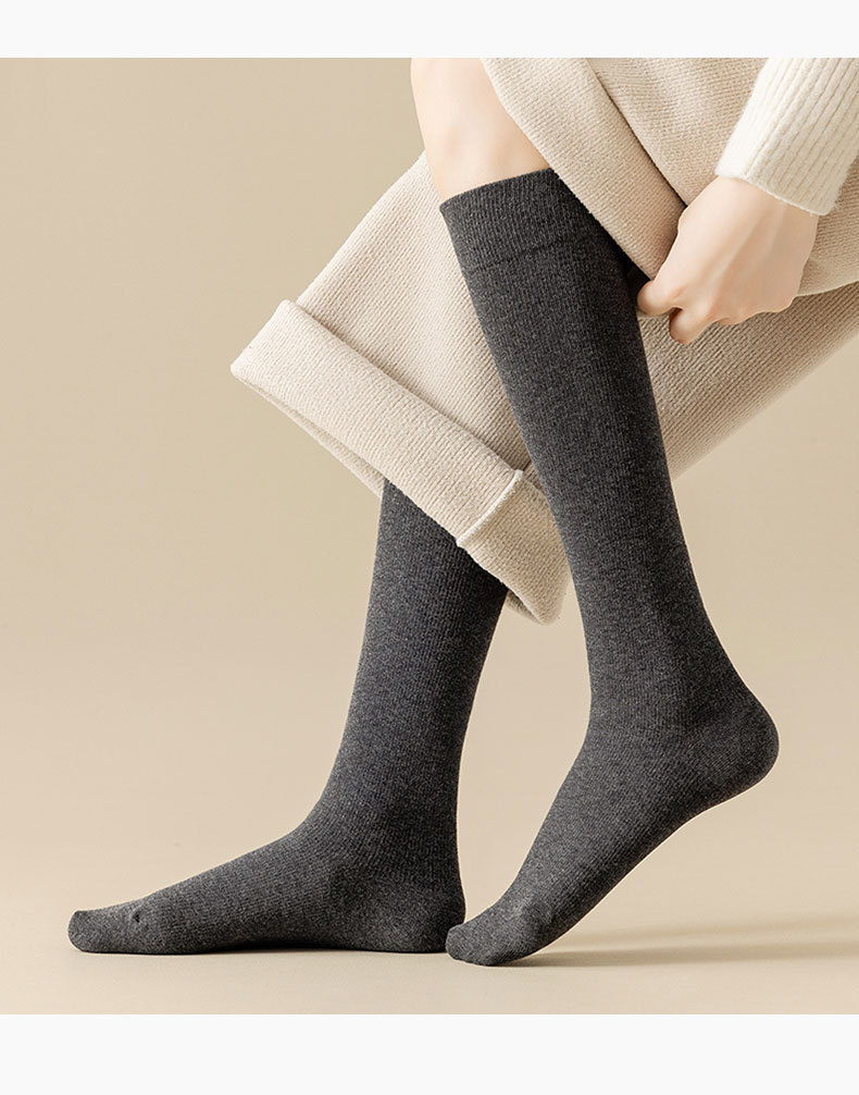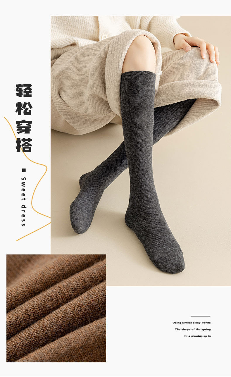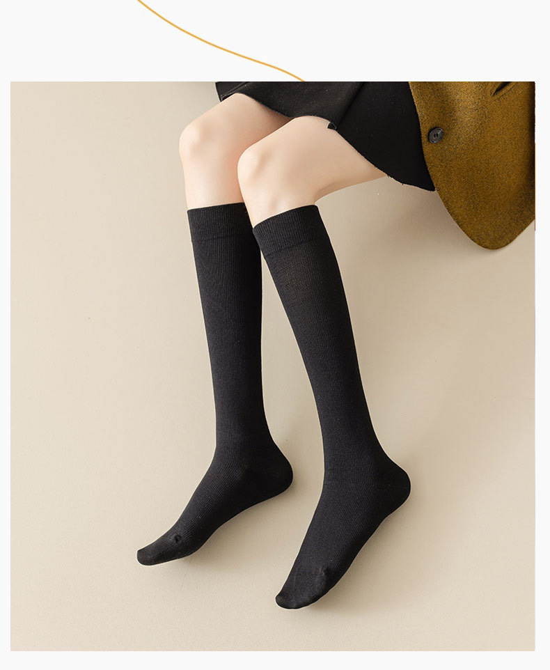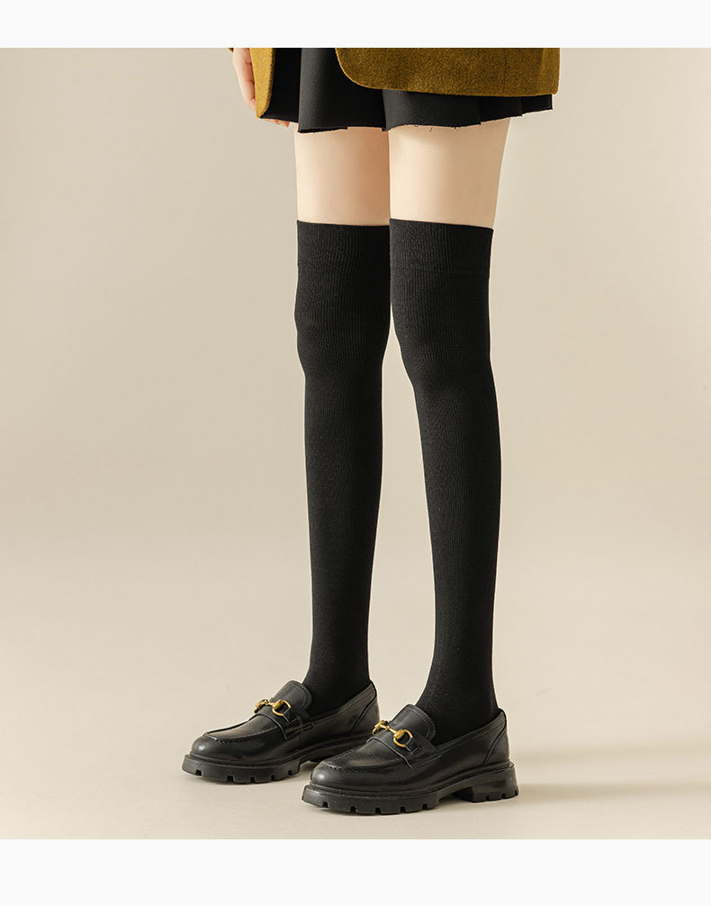 Теплые осенне-зимние женские носки-гольфы в японском стиле, мягкие высокие носки выше колена, универсальный стиль, для лоферов, однотонные длинные носки