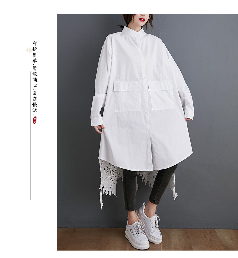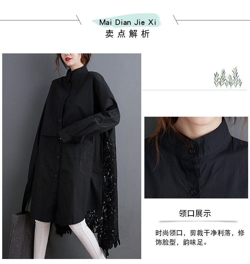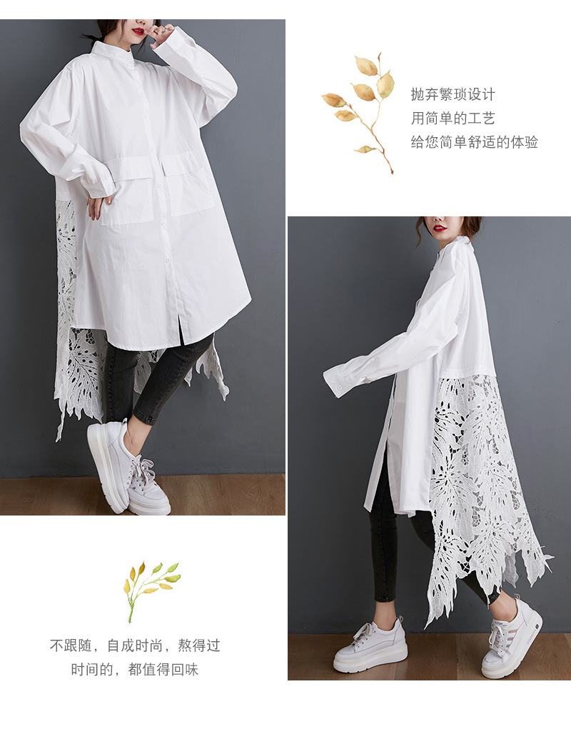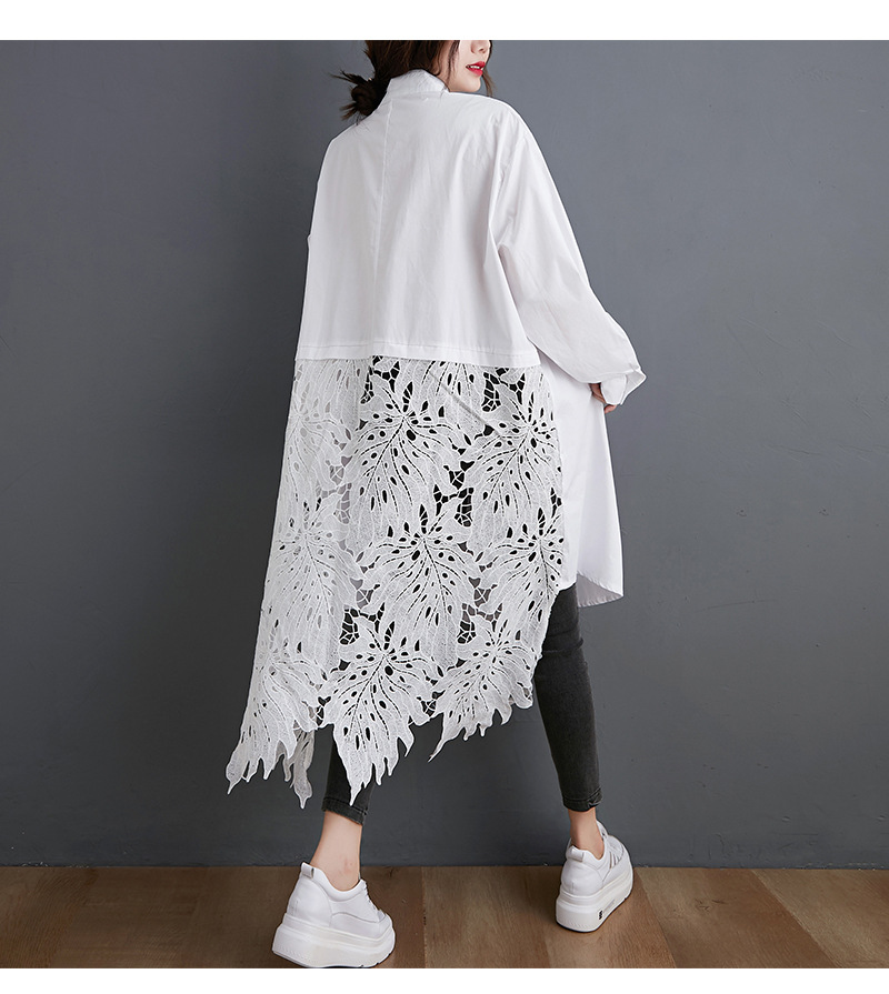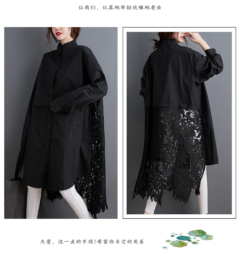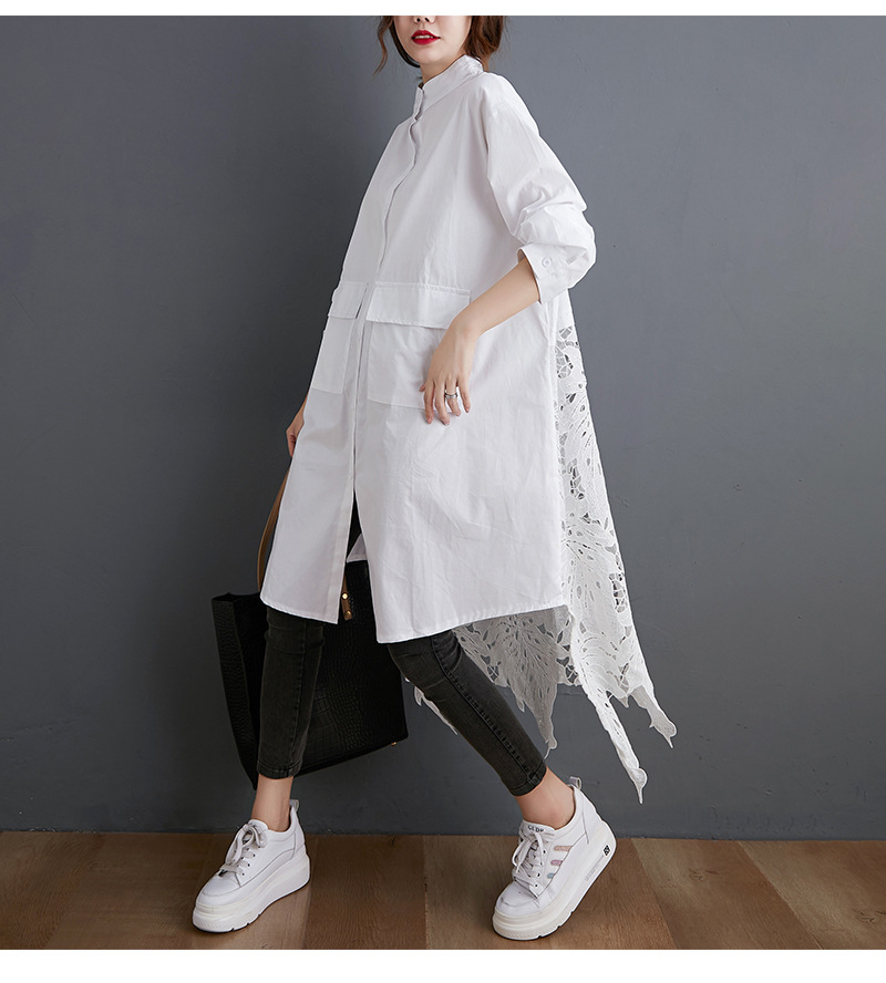 Модная женская рубашка большого размера из ажурного кружева средней длины, осень 2026
