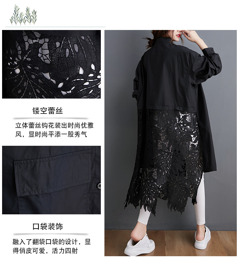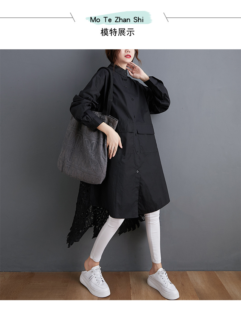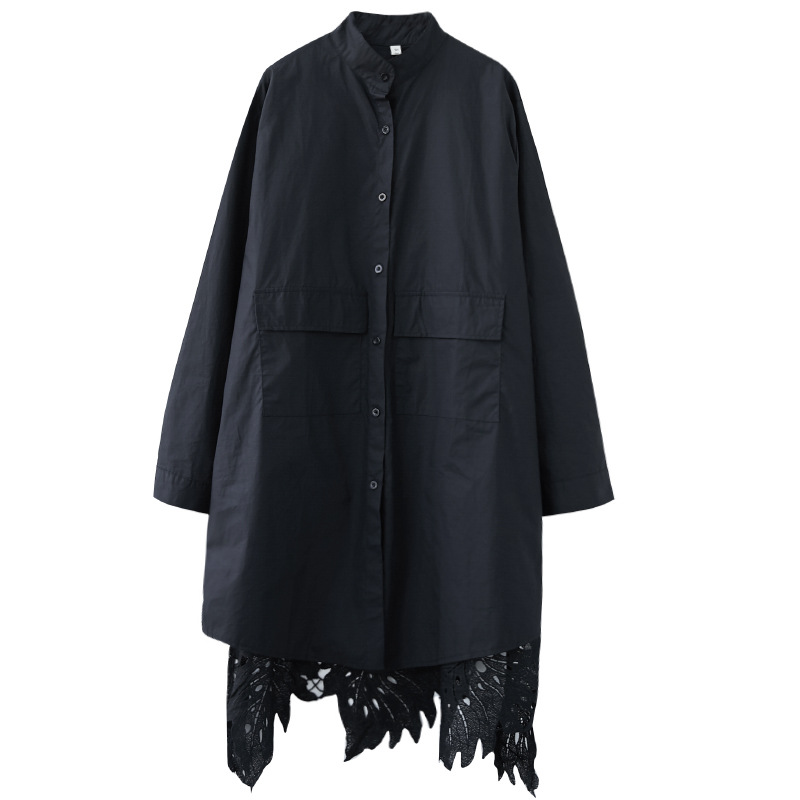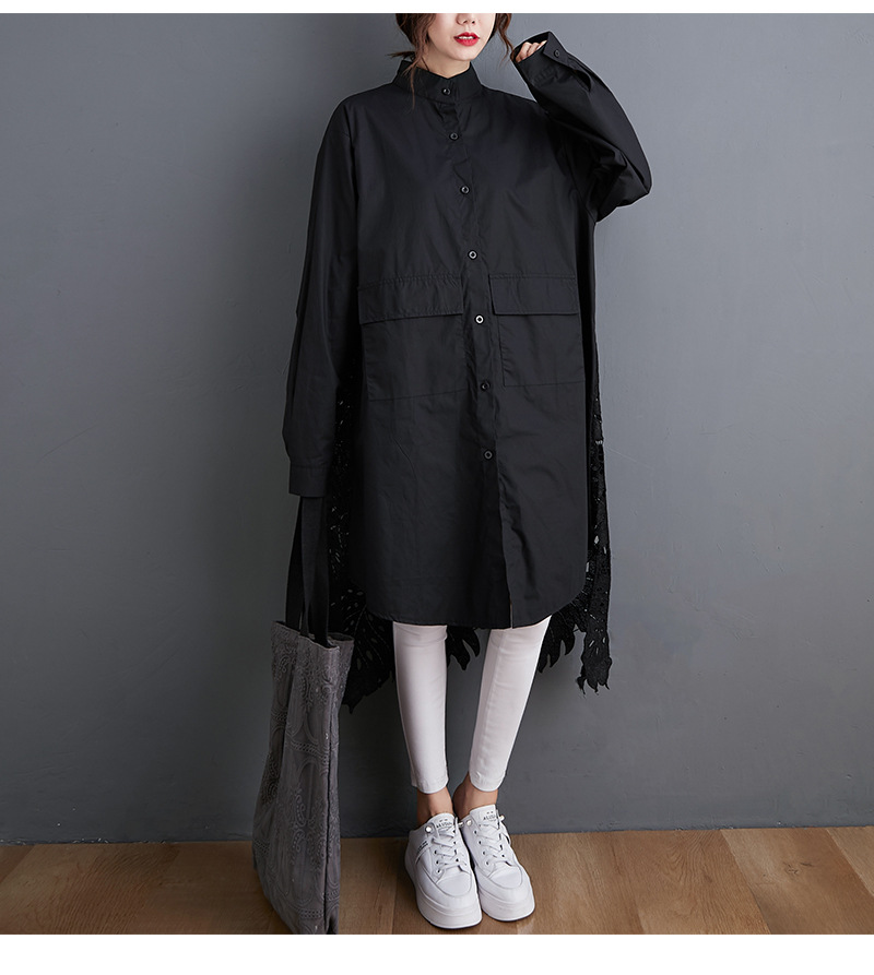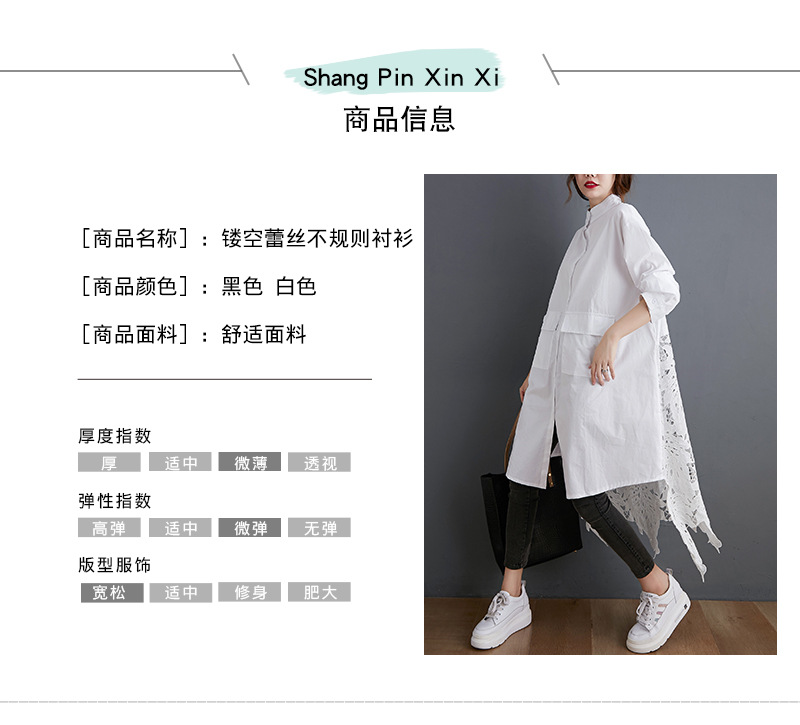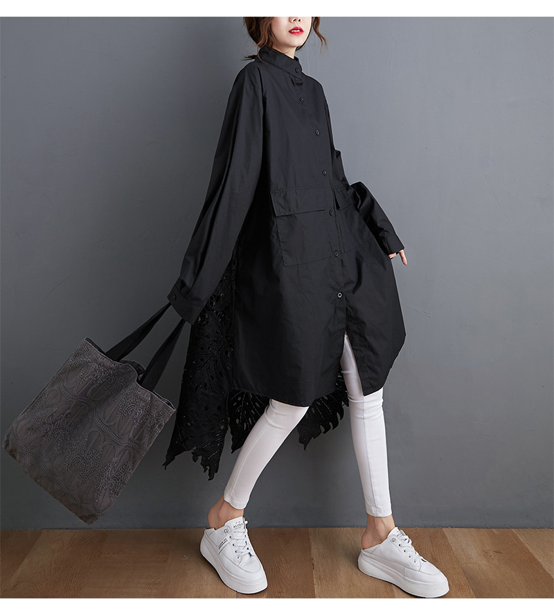 Модная женская рубашка большого размера из ажурного кружева средней длины, осень 2026