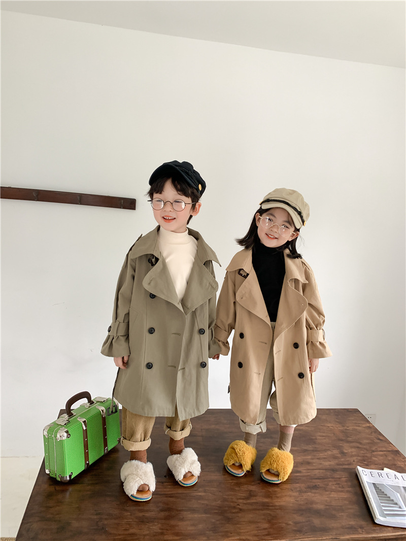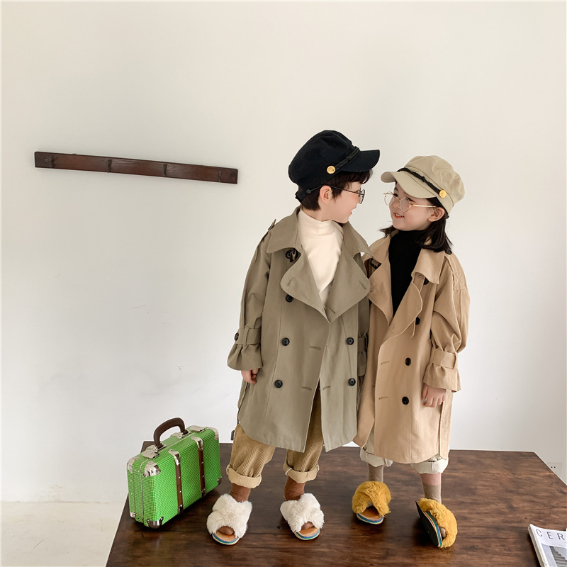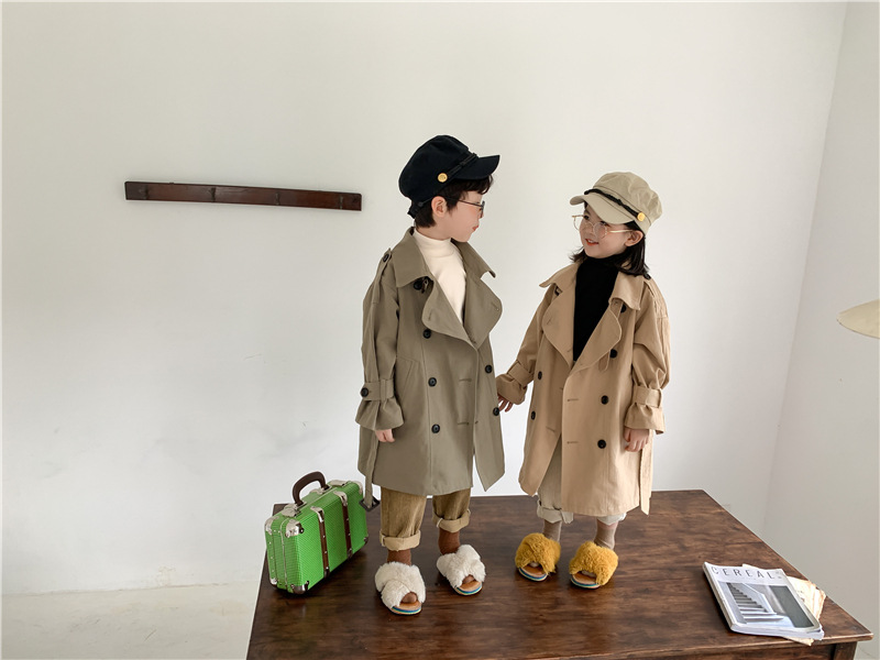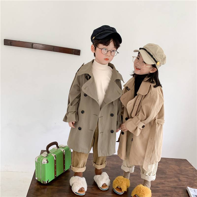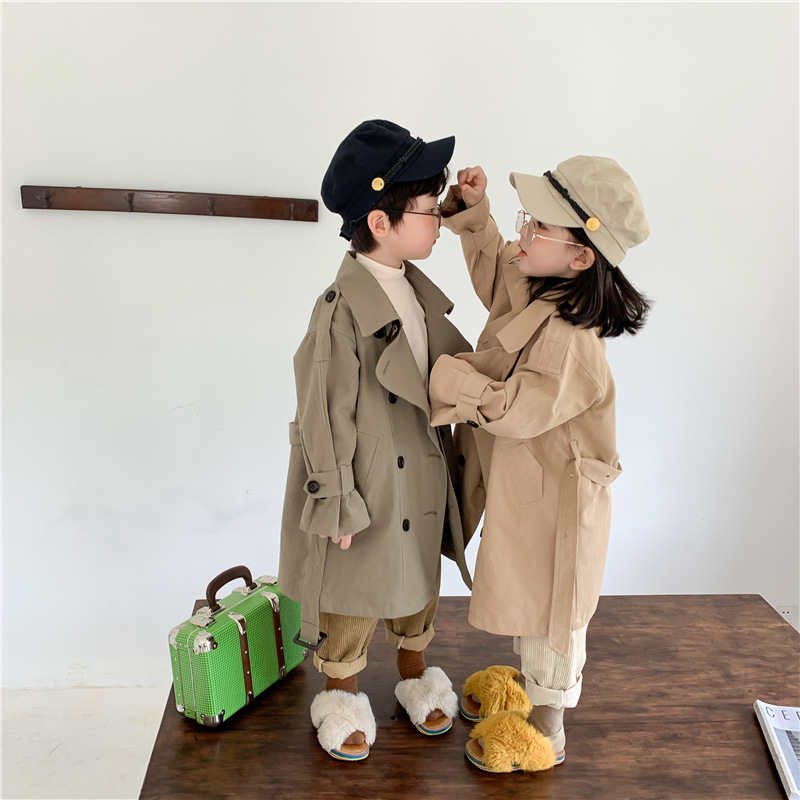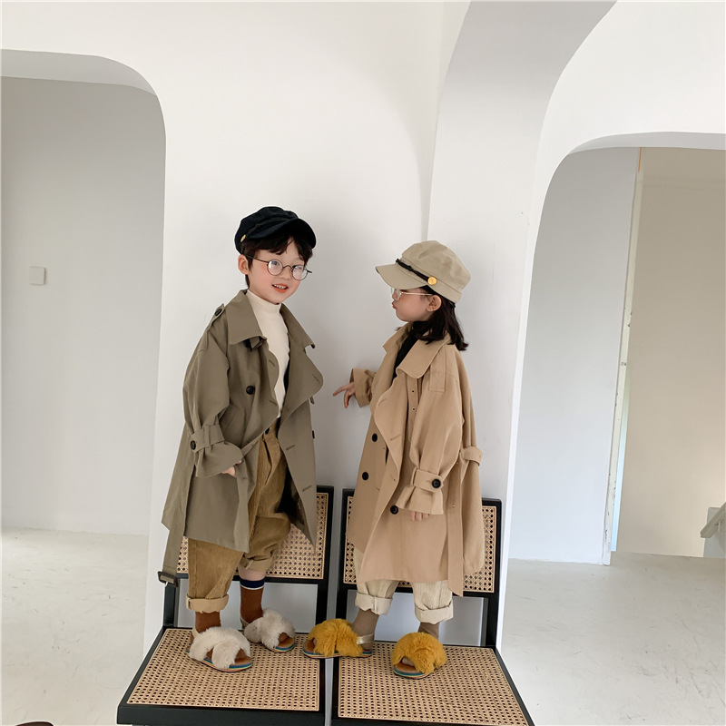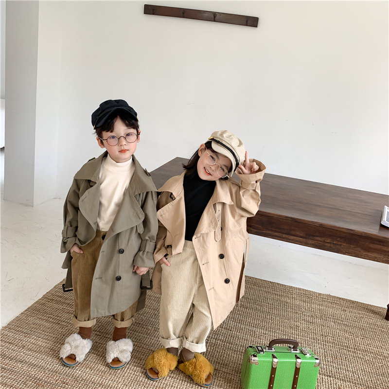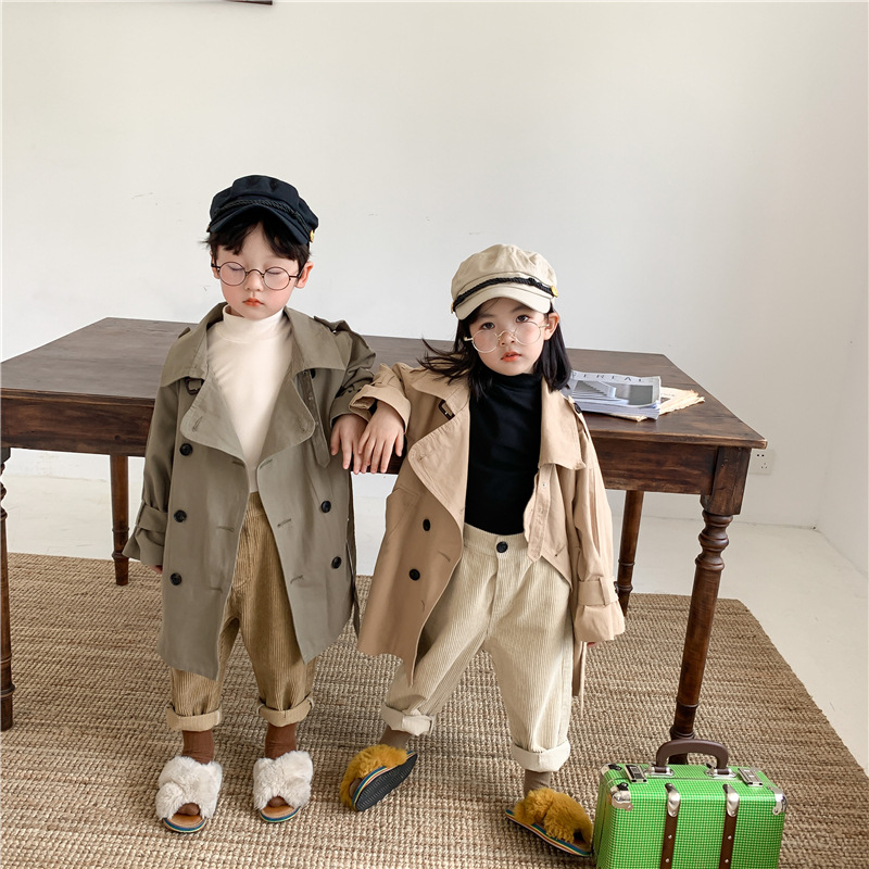 Новый осенний детский плащ 2025 года в корейском стиле для мальчиков и девочек, длинный плащ с широким воротником, модный стиль