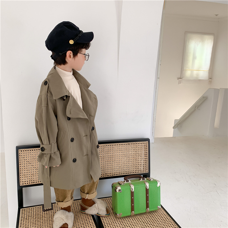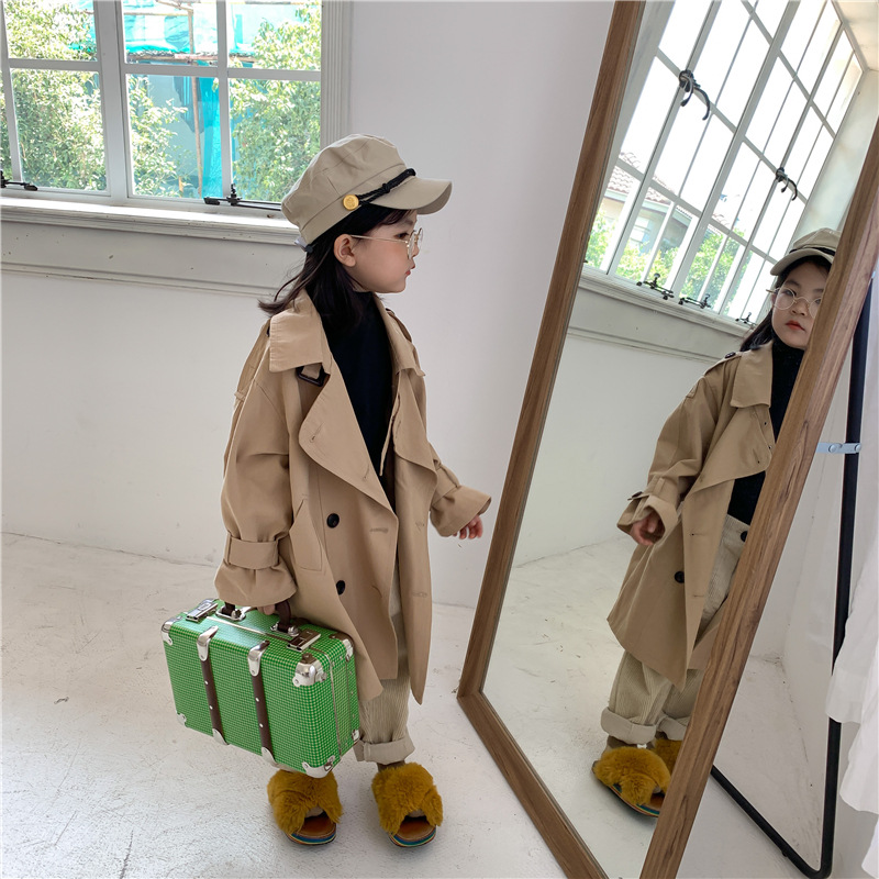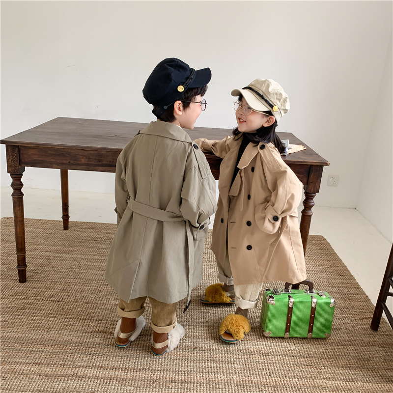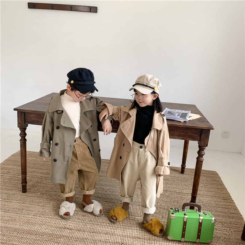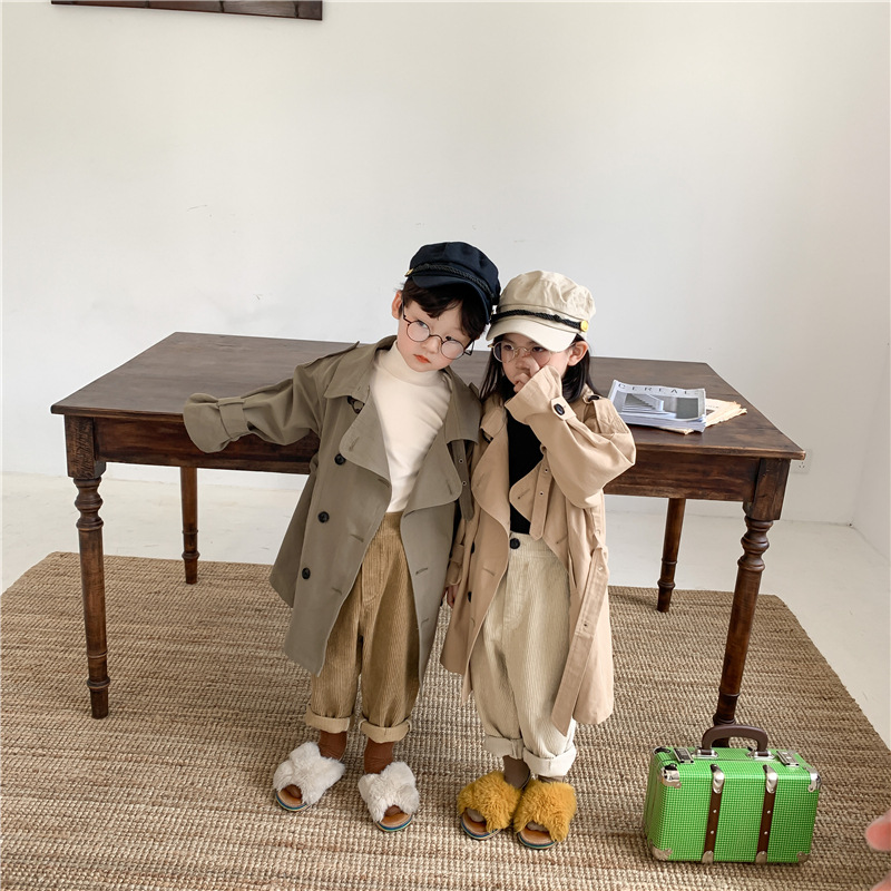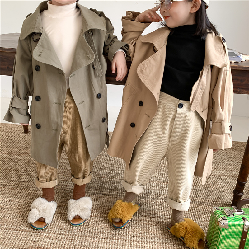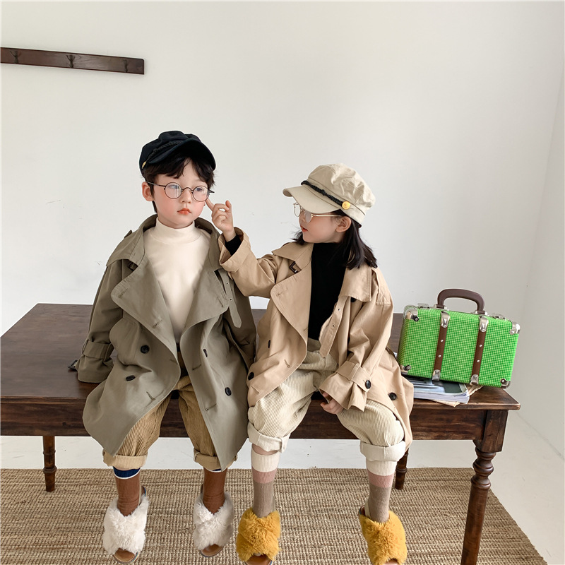Новый осенний детский плащ 2025 года в корейском стиле для мальчиков и девочек, длинный плащ с широким воротником, модный стиль