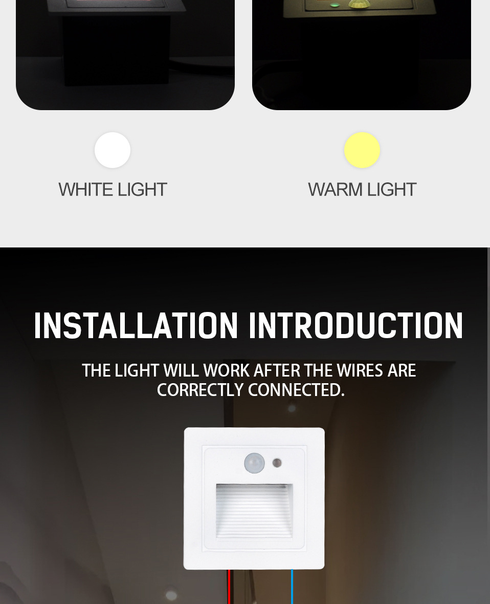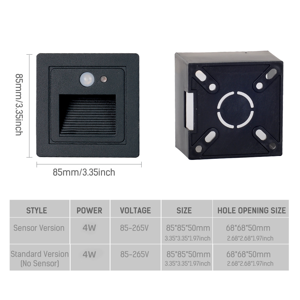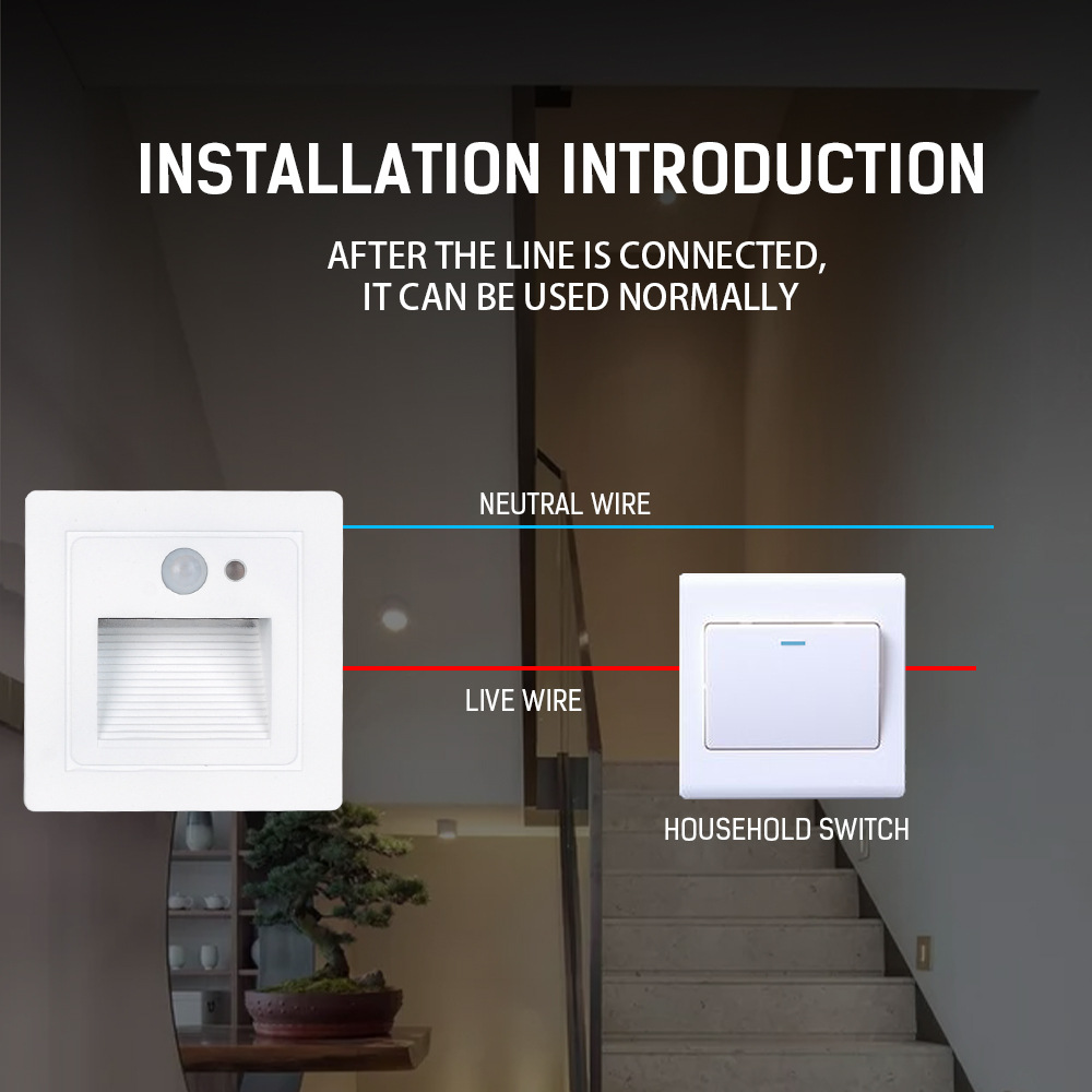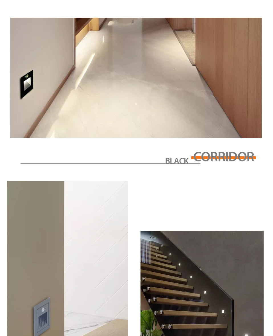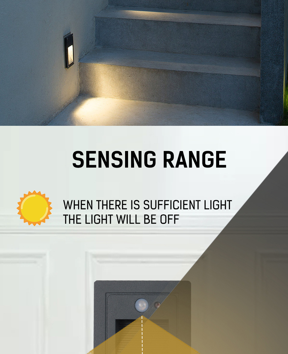 Уличный светодиодный встраиваемый светильник 4 Вт для лестниц, коридоров, угловых стен, внутренний светильник с датчиком движения для ступеней, ночник