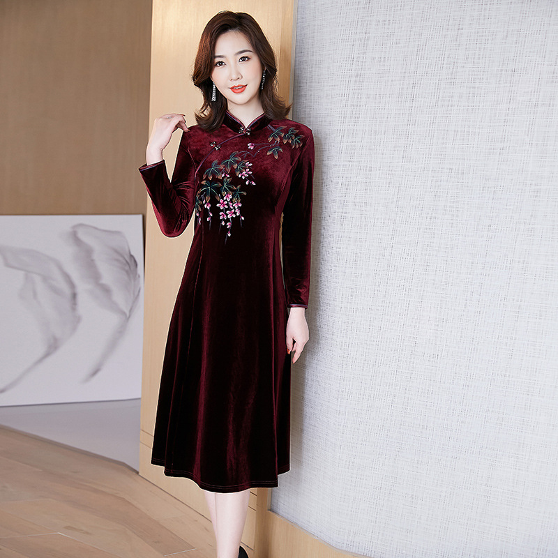 Ручная роспись узор темперамент ретро платье модное простое удобное и дышащее тонкое тело воротник мама платье чонсам