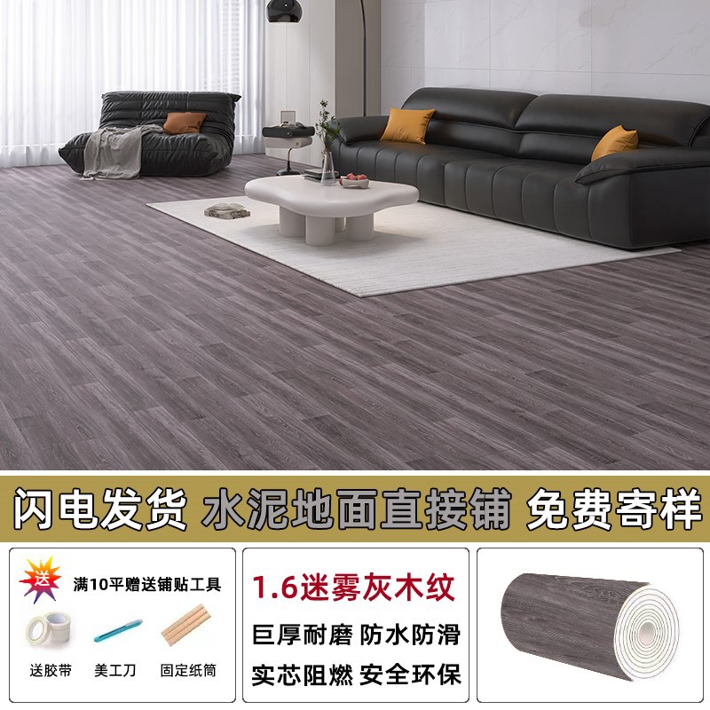 ПВХ напольный клей 1.6MM пластиковая инженерная кожа утолщена, износостойкая и устойчивая к грязи коммерческая напольная доска сплошной цвет напольной кожи