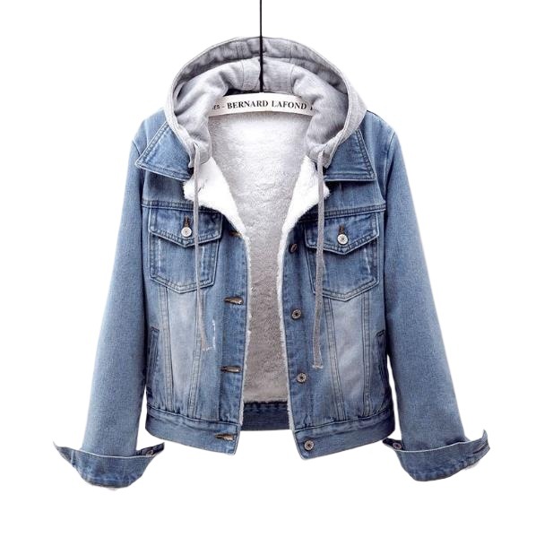 Зимняя джинсовая куртка 2025 года, женская бархатная утепленная хлопковая куртка в корейском стиле со съемным капюшоном, теплая бархатная хлопковая куртка из ягненка, короткий стиль