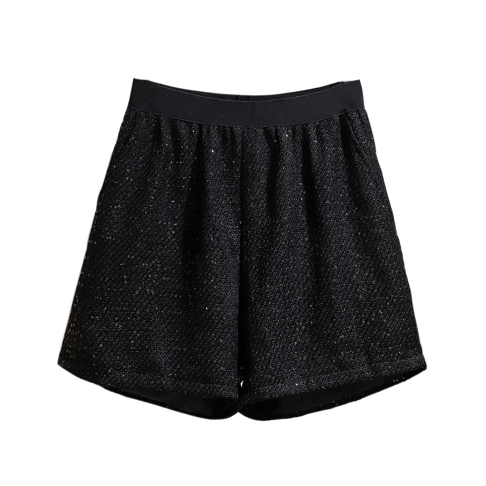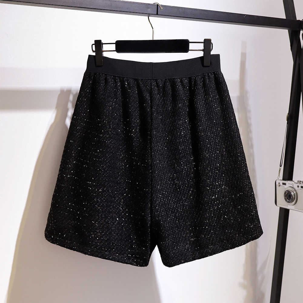 Большой размер женский толстый мм осень 2024 новый блестящий шелковый тиз плюс жир, повседневные брюки тонкие, широкие шорты