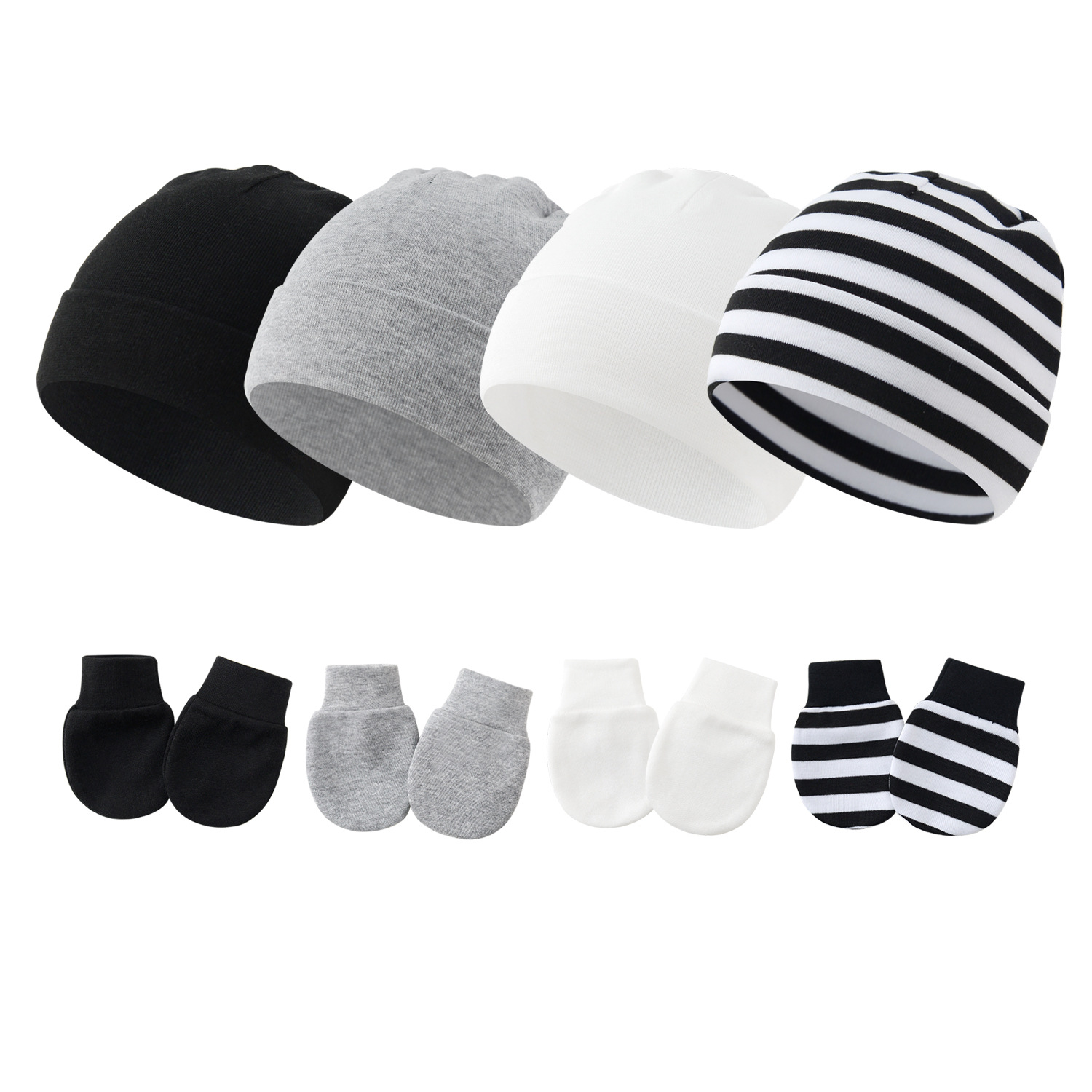 Осенне-зимняя шапочка для новорожденных с антицарапающими варежками, комплект однотонных шапочек-пуловеров, детские аксессуары для малышей