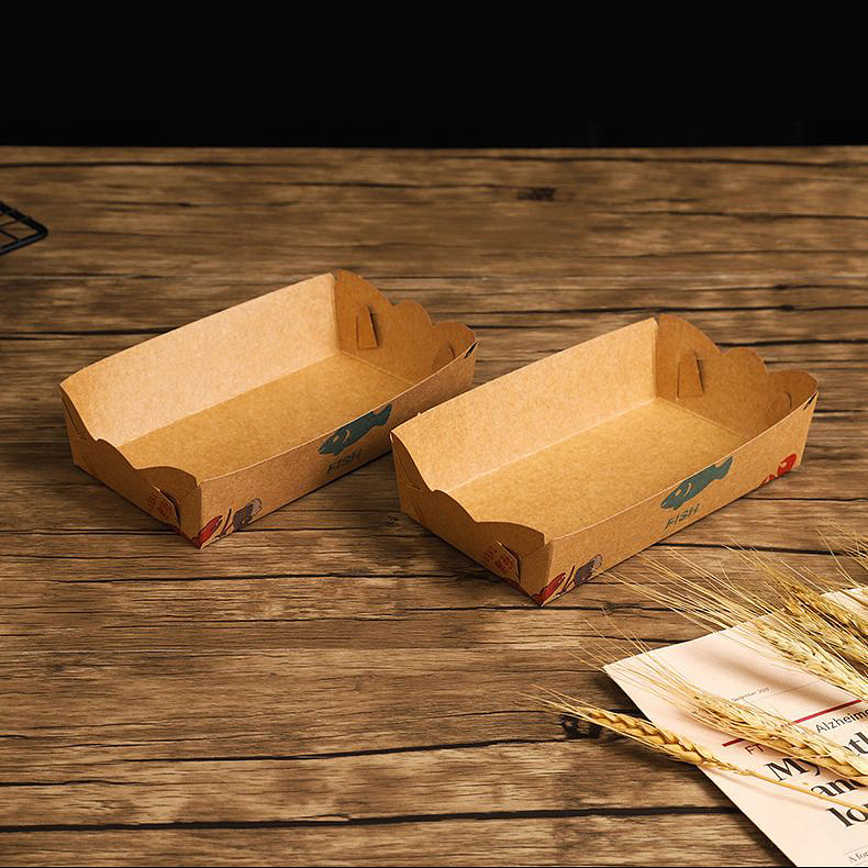 Фабричная Прямая Коробка для закусок одноразовая крафт-бумага с покрытием жареная Еда бесплатная Складная открытая упаковочная коробка оптом
