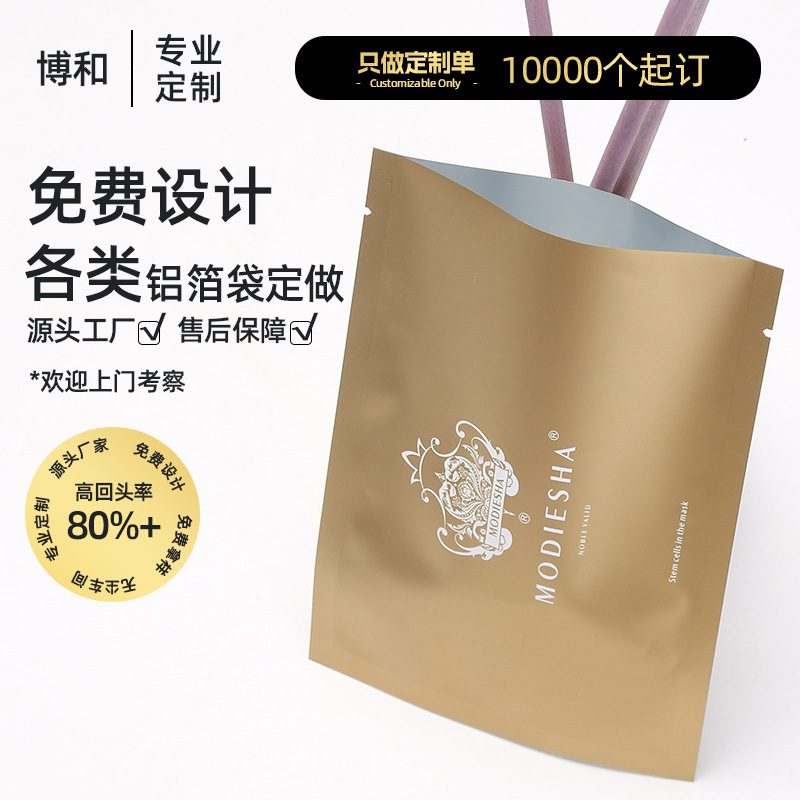 Сумка для маски для лица, индивидуальный дизайн печати, косметическая упаковочная сумка, высококачественное трехстороннее уплотнение, легко рвется, сумка из чистой алюминиевой фольги по индивидуальному заказу