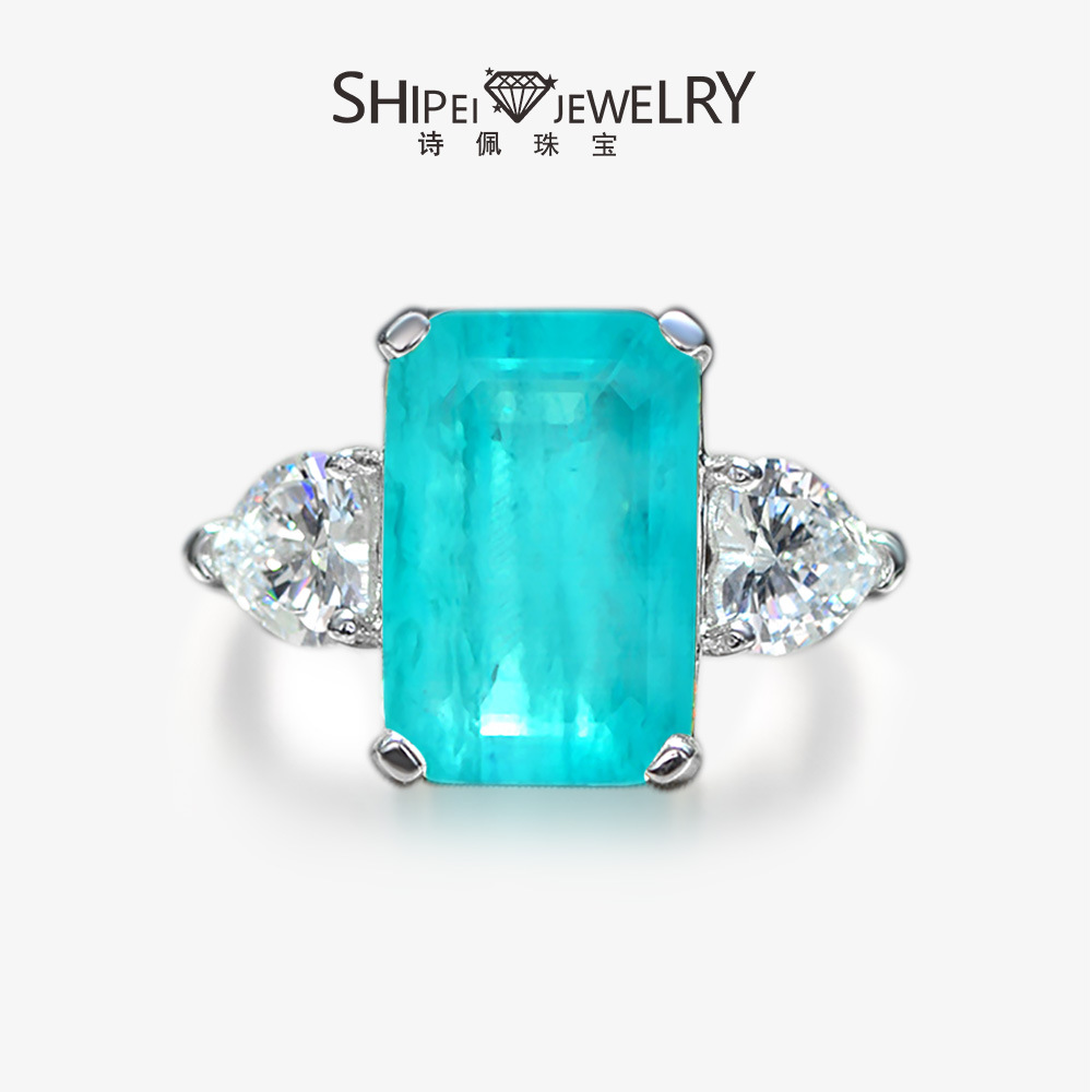 Shipei Jewelry 925 Серебро 5 карат Синтетический Параиба Прямоугольный 8*12 Высокоуглеродистое кольцо с бриллиантом Женский Заводской магазин