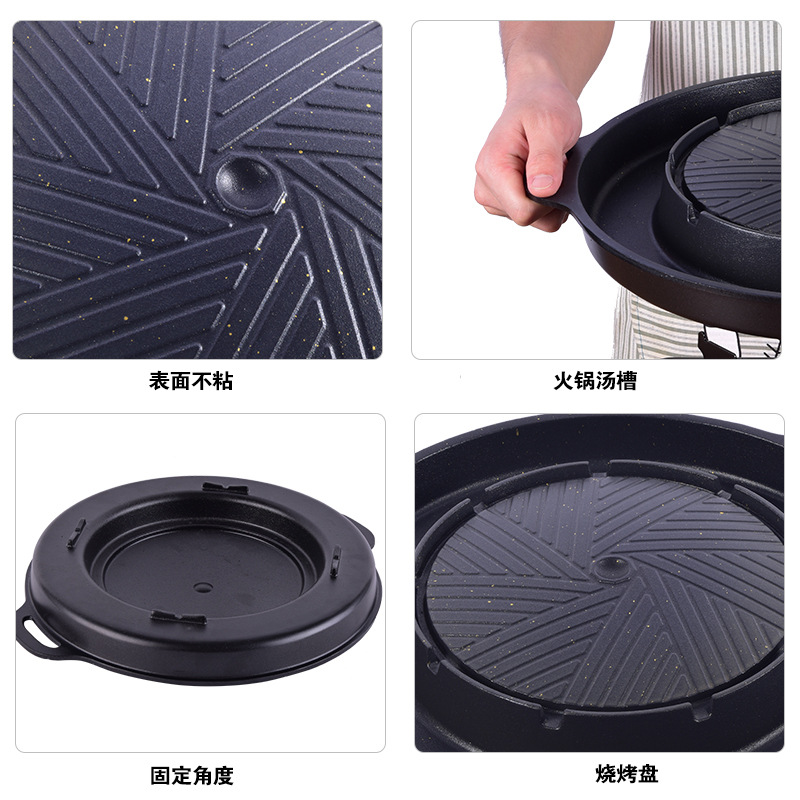 Интегрированный горшок для ополаскивания и запекания в Корейском стиле Сковорода для барбекю теппаньяки Картридж для барбекю с антипригарным покрытием Плита на открытом воздухе Maifan Stone Противень для выпечки Портативная