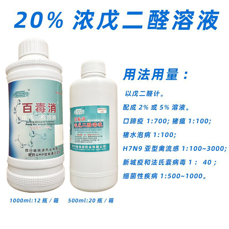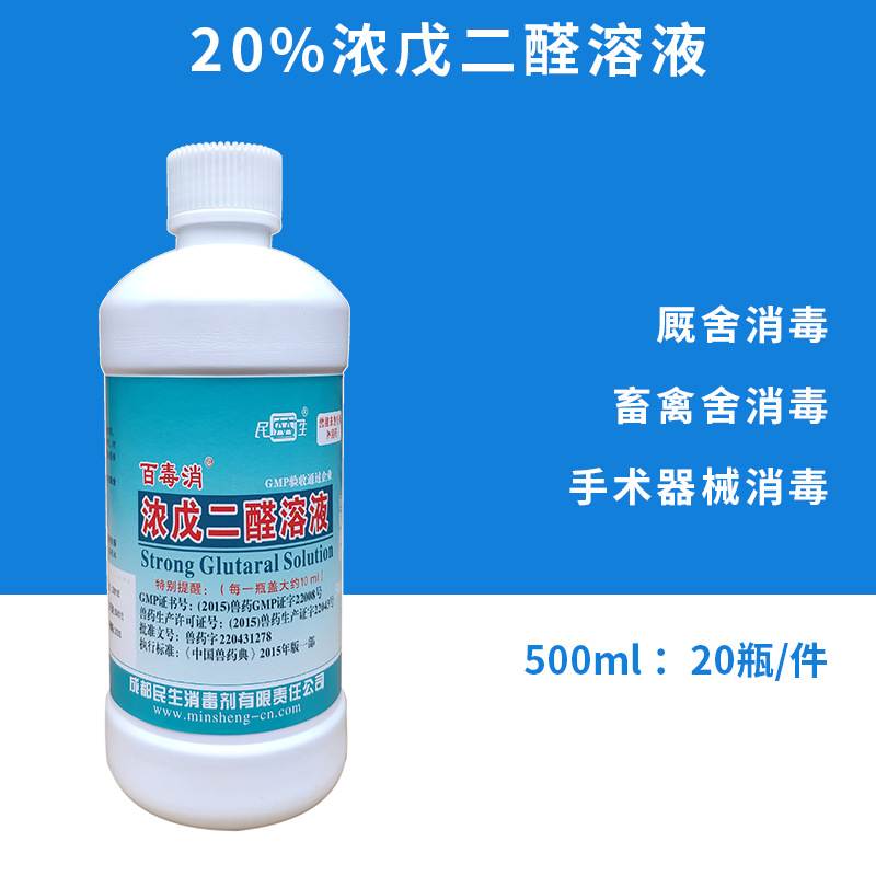 Оптовая продажа ветеринарных препаратов Chengdu Minsheng 20% концентрированный раствор глютаральдегида 500 мл 1000 мл дезинфицирующая вода для животноводства и птицеводческих ферм