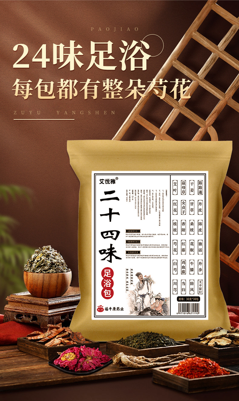 Двадцать четыре ароматных мешка для ног полыни для ног, мешок для ванны для ног оптом, имбирь, красный цветок, травяной перец, пакет для ног