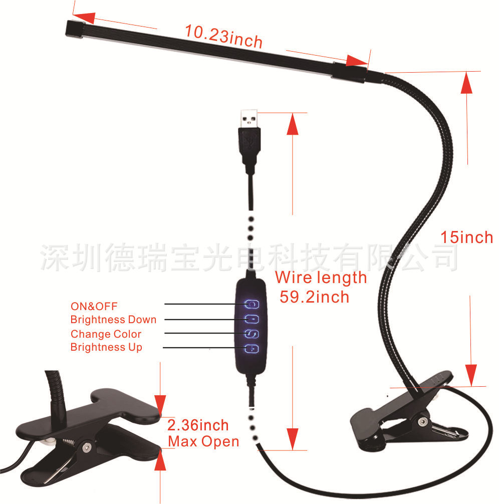 USB输入,大力夹,开口70mm,夹子尺寸110*70,采用3014高亮光源,1206贴片电阻,整灯80灯80电阻,高亮护眼