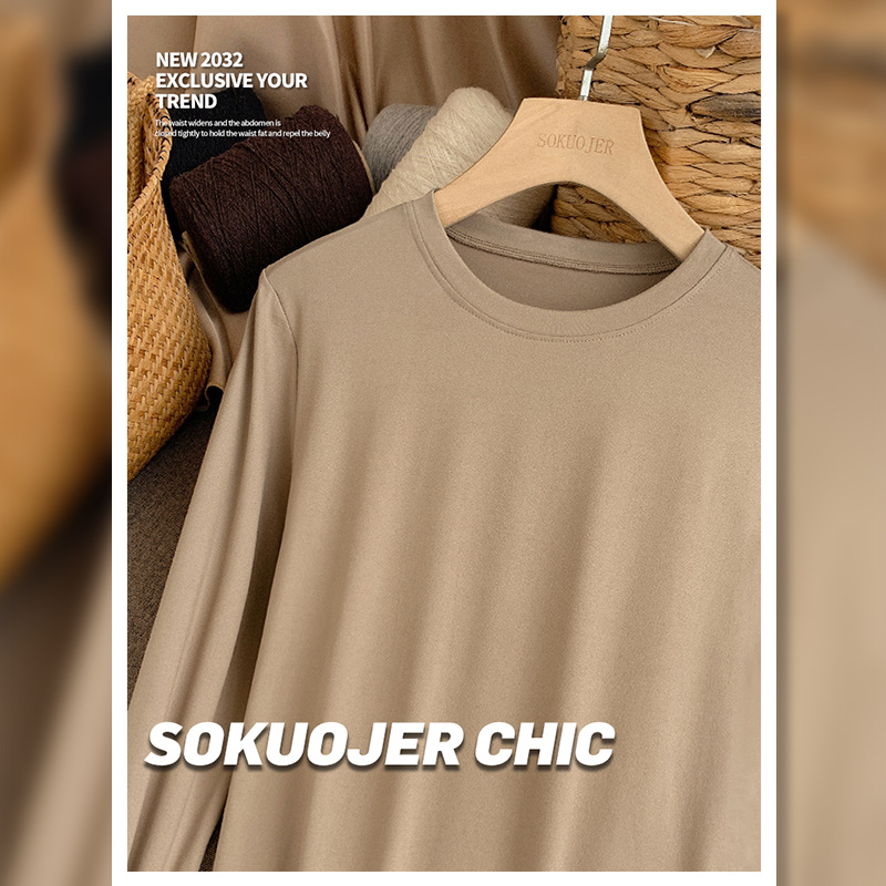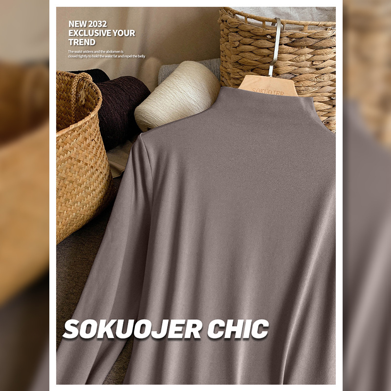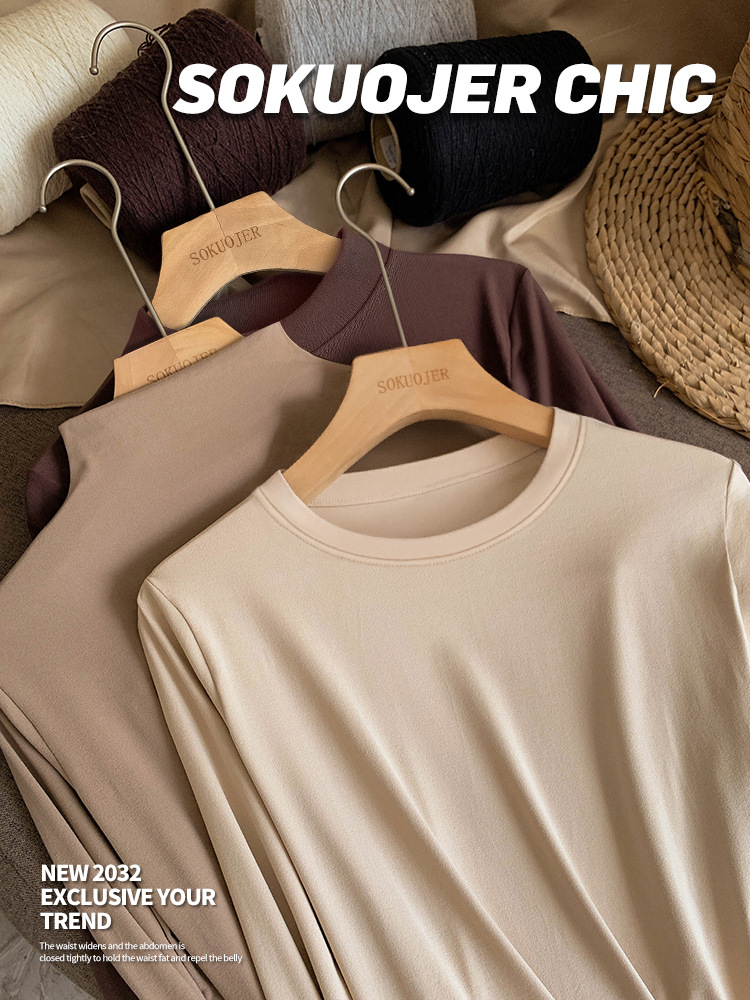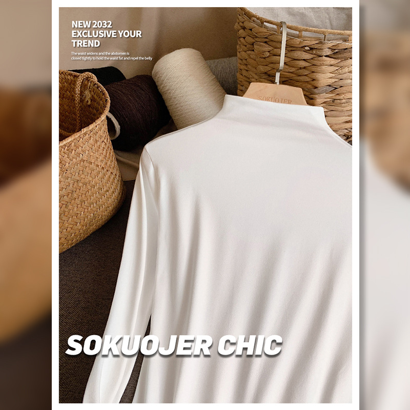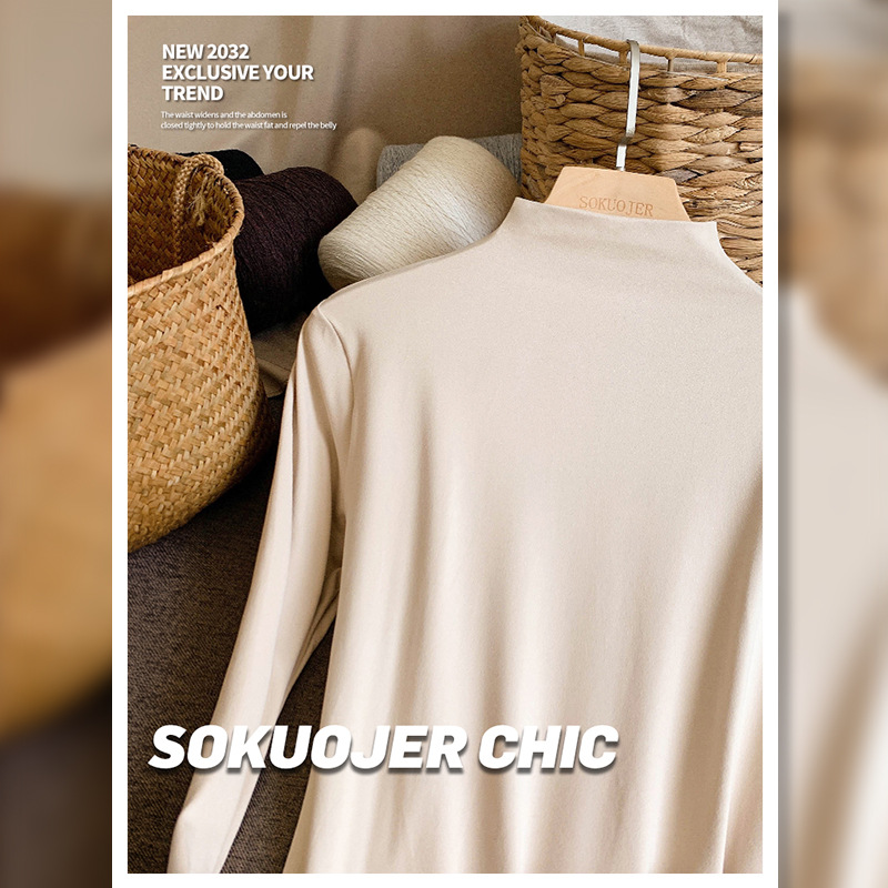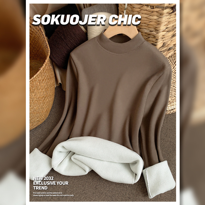Высокое качество мягкая клейкая двусторонняя шлифовальная рубашка с половинным воротником нижняя рубашка женская осень-зима тонкая тонкая футболка с длинными рукавами