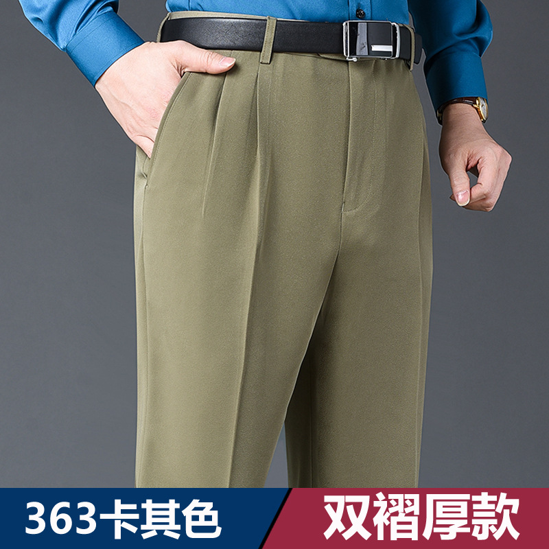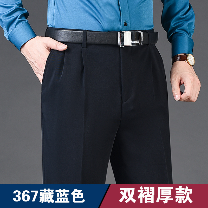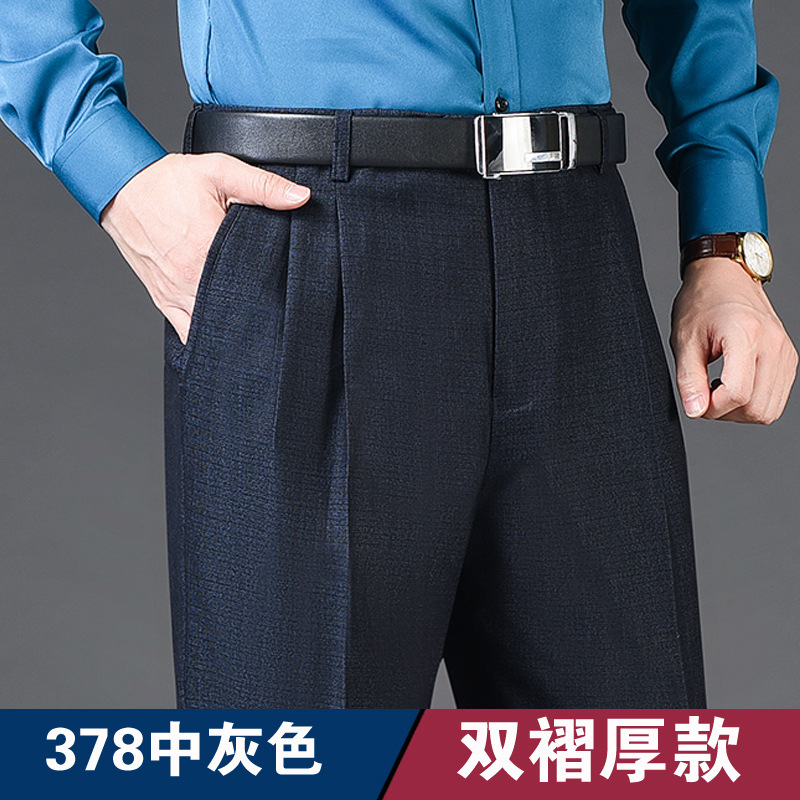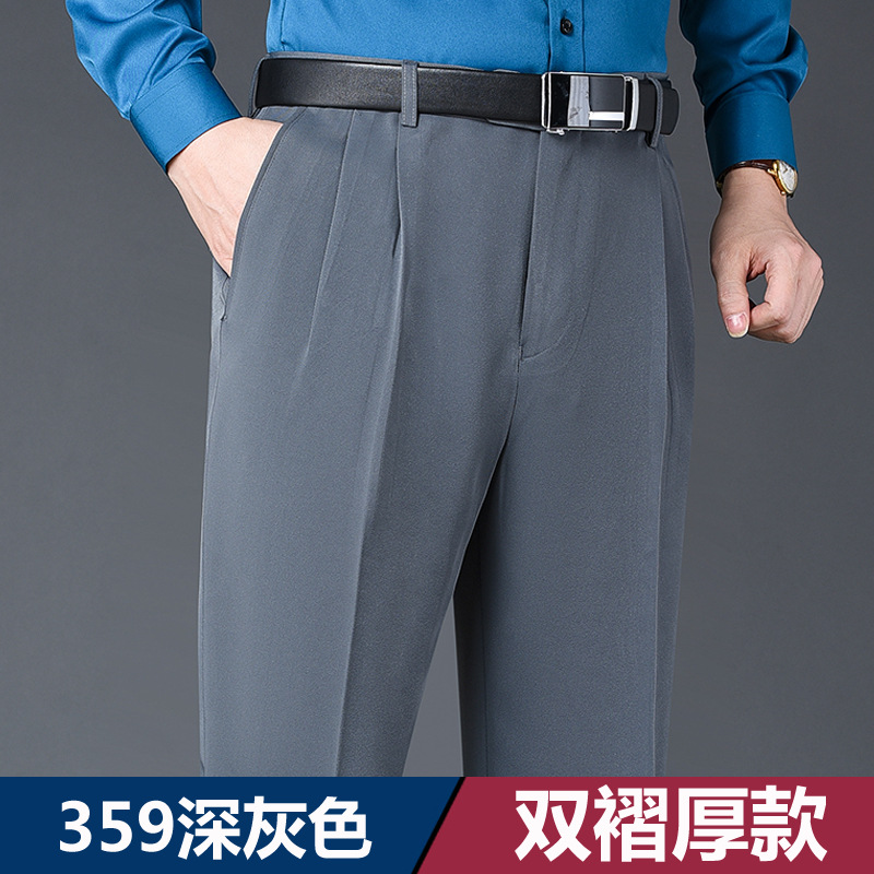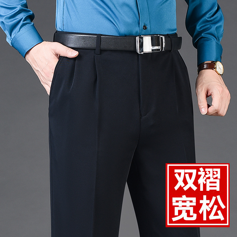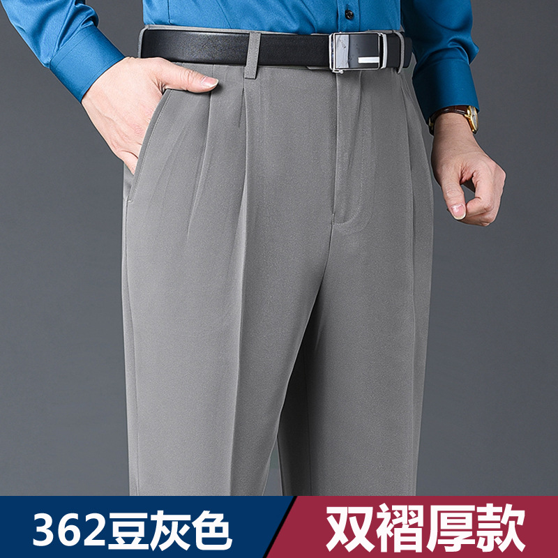 Мужские классические брюки с двойной складкой, свободного кроя, с высокой талией, не требующие глажки, для повседневной носки, делового стиля и работы, осенне-зимняя коллекция 2025, утепленный вариант для весны/осени