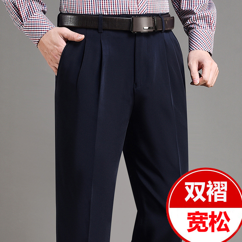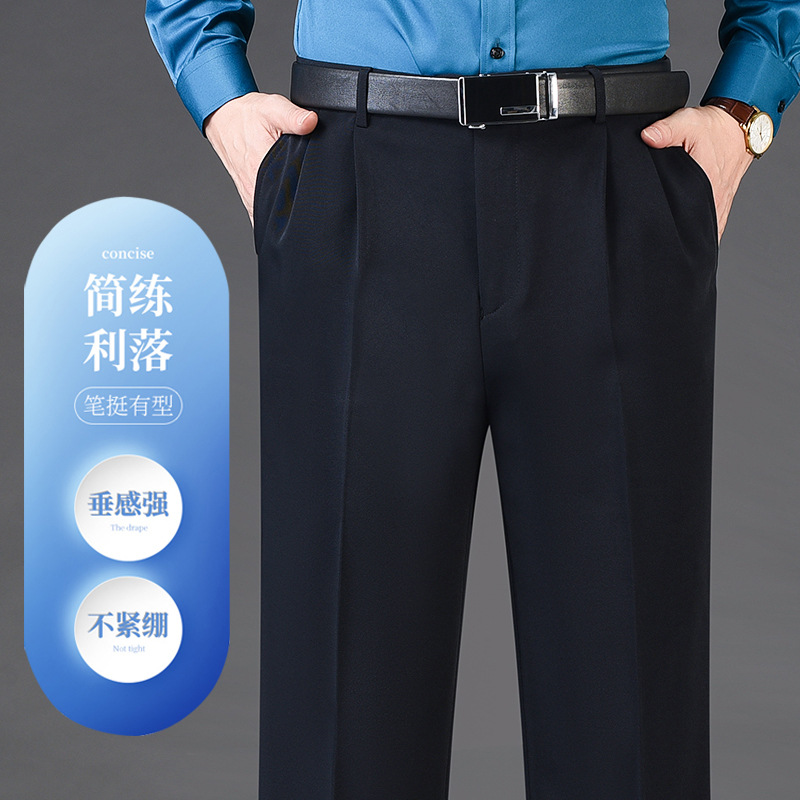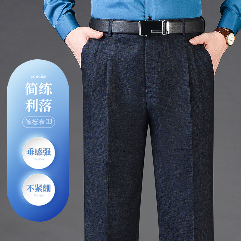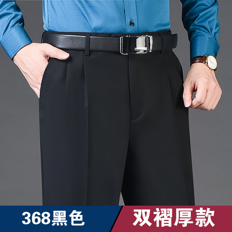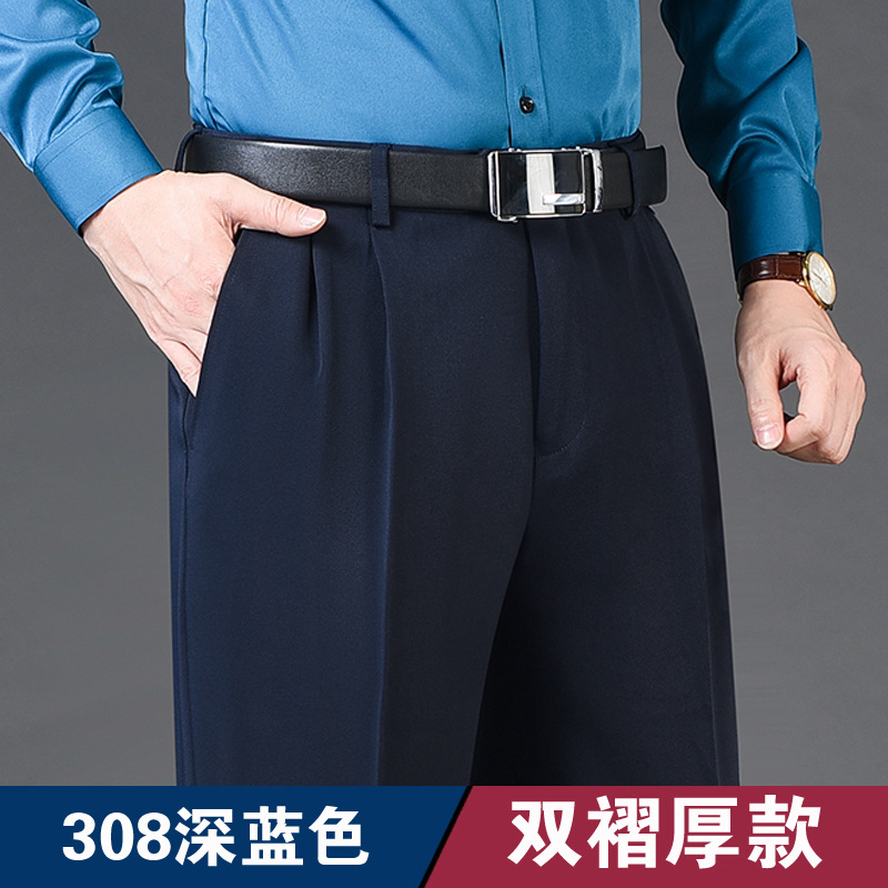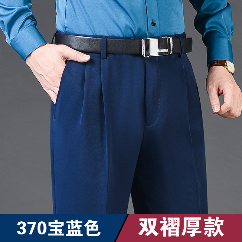 Мужские классические брюки с двойной складкой, свободного кроя, с высокой талией, не требующие глажки, для повседневной носки, делового стиля и работы, осенне-зимняя коллекция 2025, утепленный вариант для весны/осени