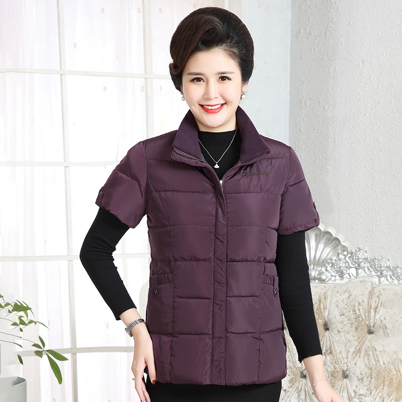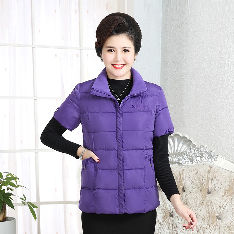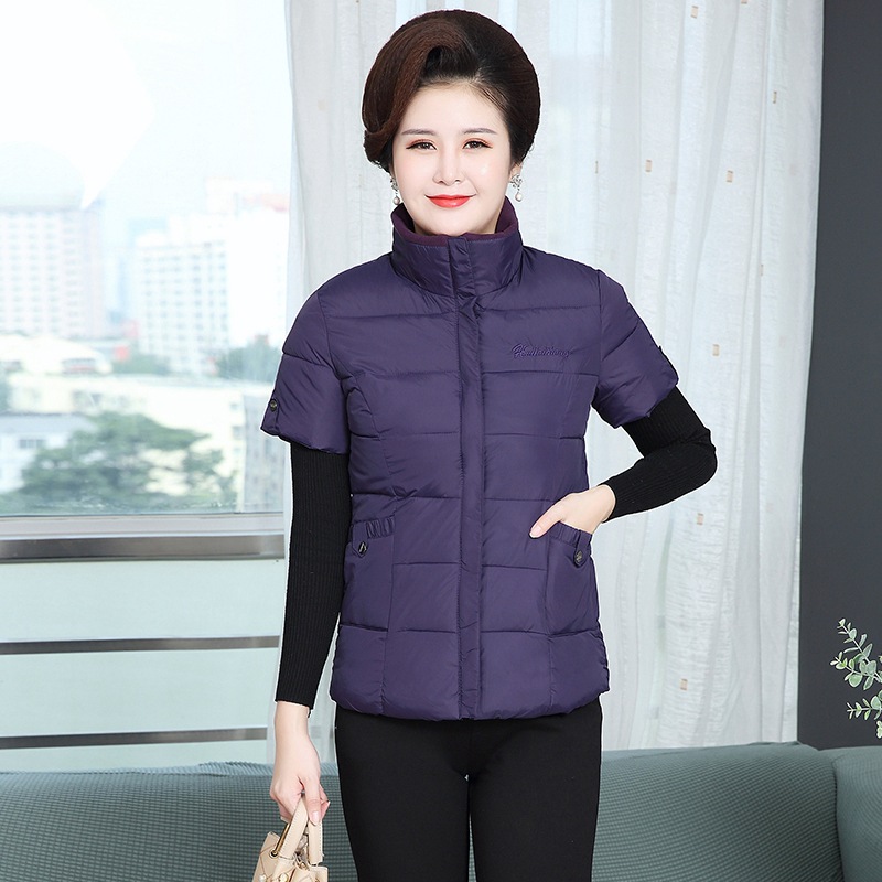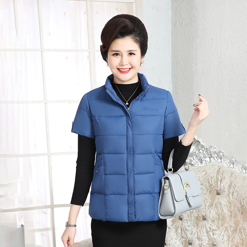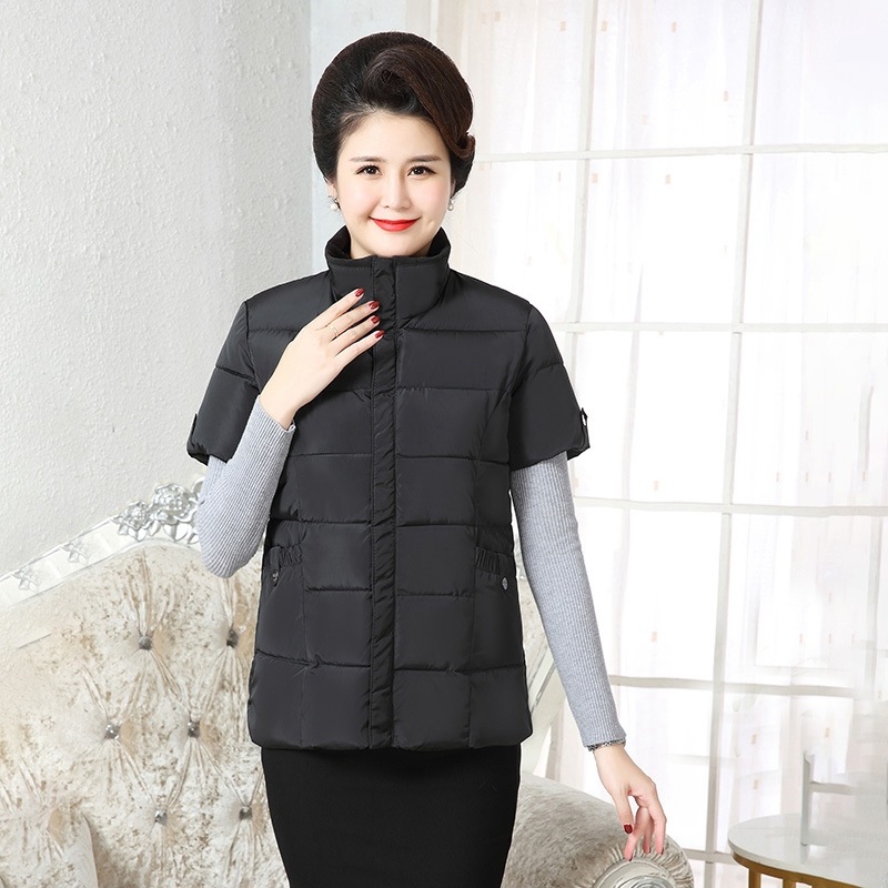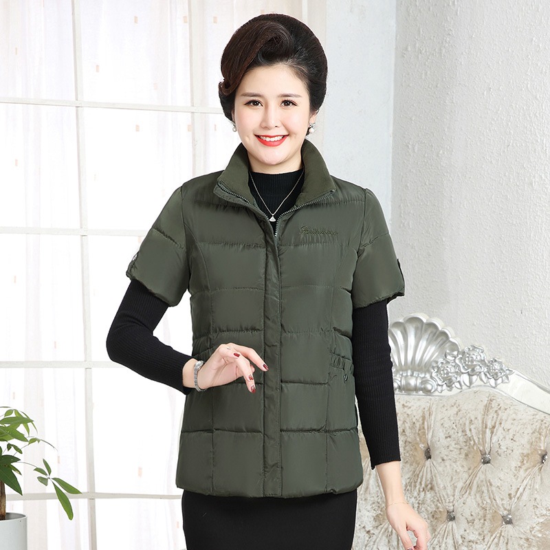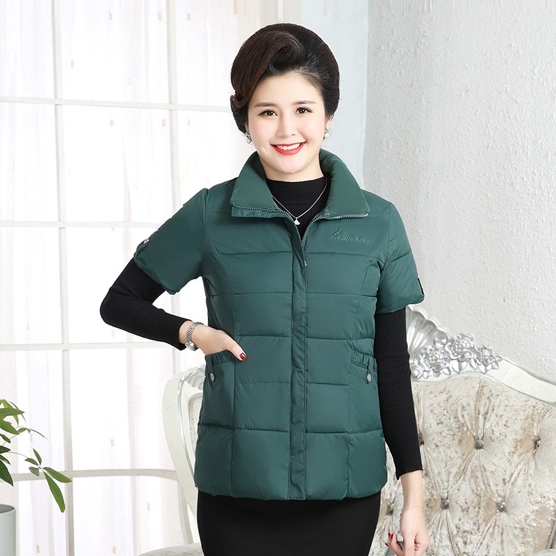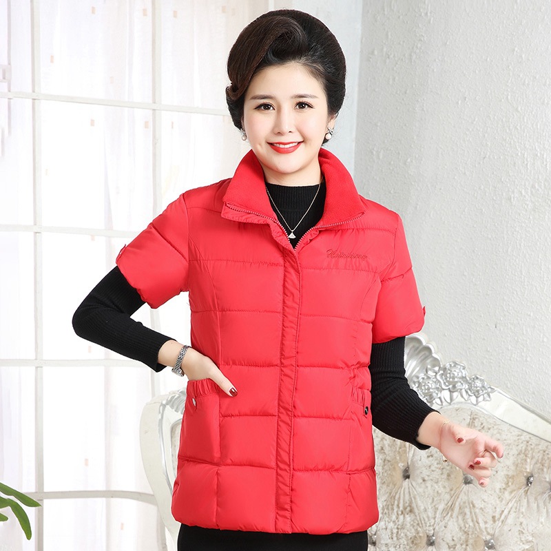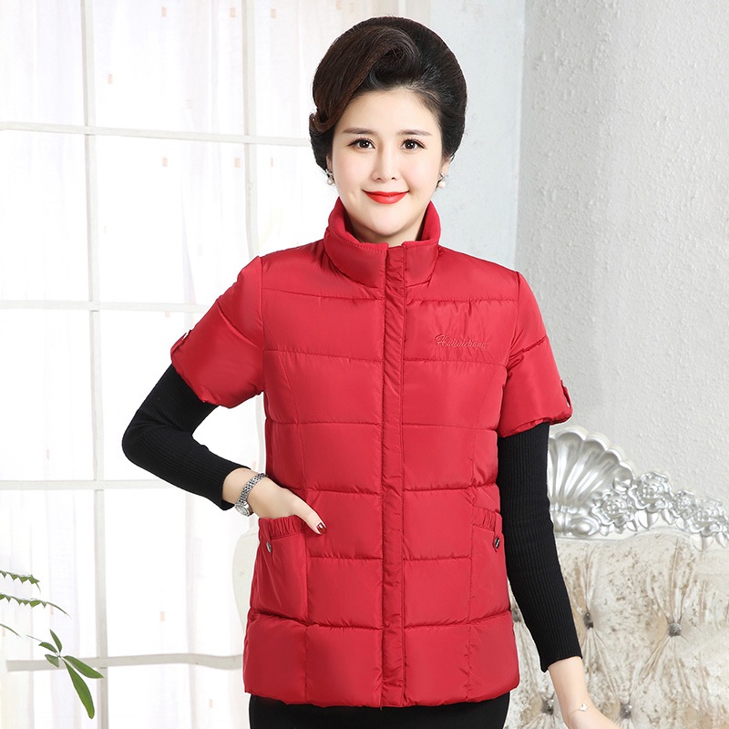 Осенне-зимняя одежда для мам Домашний жилет с подплечником и воротником Теплый жилет больших размеров Зимняя утепленная куртка с короткими рукавами и хлопковой подкладкой для людей среднего и пожилого возраста