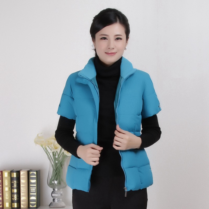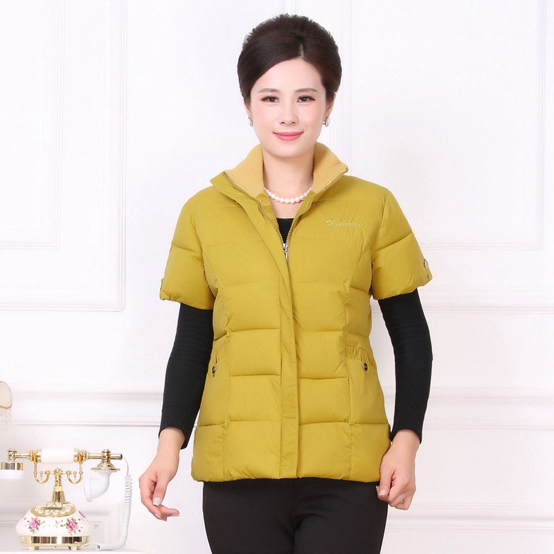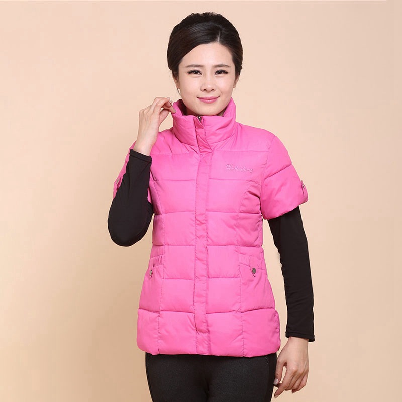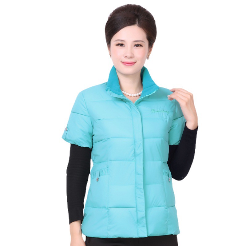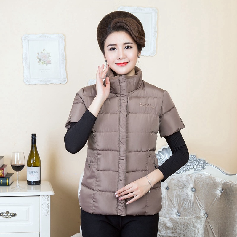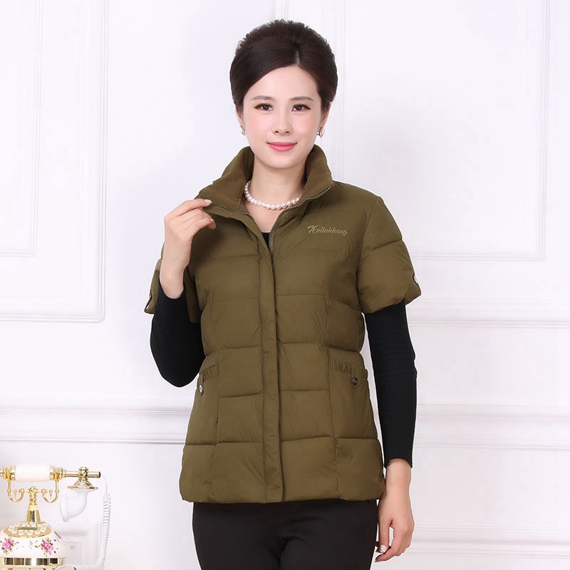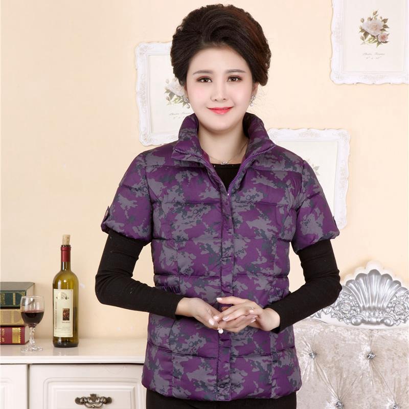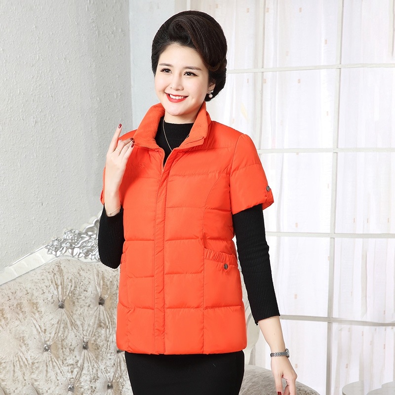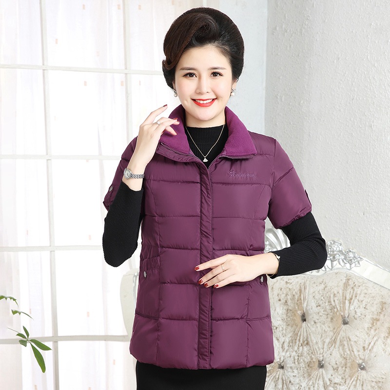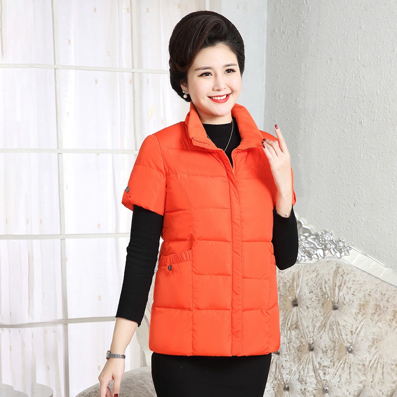 Осенне-зимняя одежда для мам Домашний жилет с подплечником и воротником Теплый жилет больших размеров Зимняя утепленная куртка с короткими рукавами и хлопковой подкладкой для людей среднего и пожилого возраста