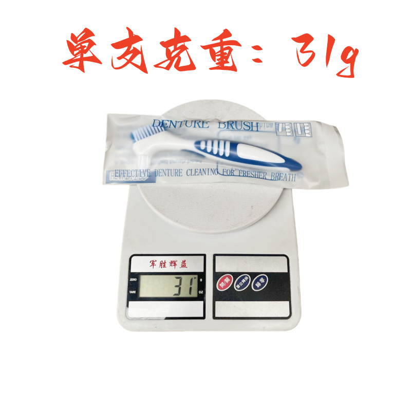 本产品为双头设计大头去除实物颗粒,小刷头清晰不易清洁牙齿缝隙,凹槽防滑手柄设计方便老人手指拿握,不易打滑