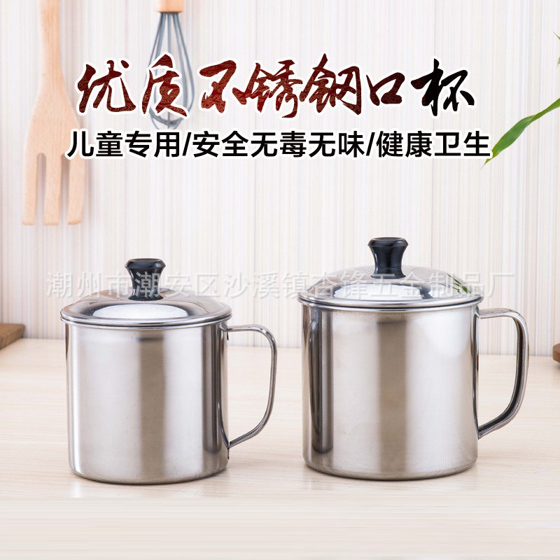 304 Немагнитная утолщенная чашка для рта из нержавеющей стали Чашка для воды для детского сада Студенческая детская чашка Чашка для питьевой воды Чашка для рта с крышкой