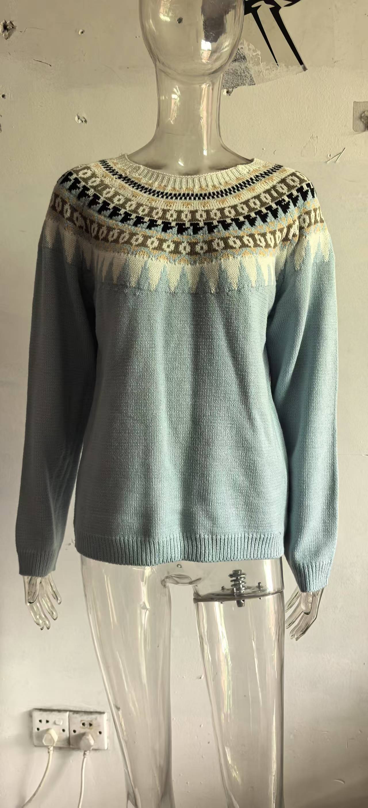 Европейский и американский женский зимний Ebay свитер полу-пуловер прямой печати нейтральный ветер свитер