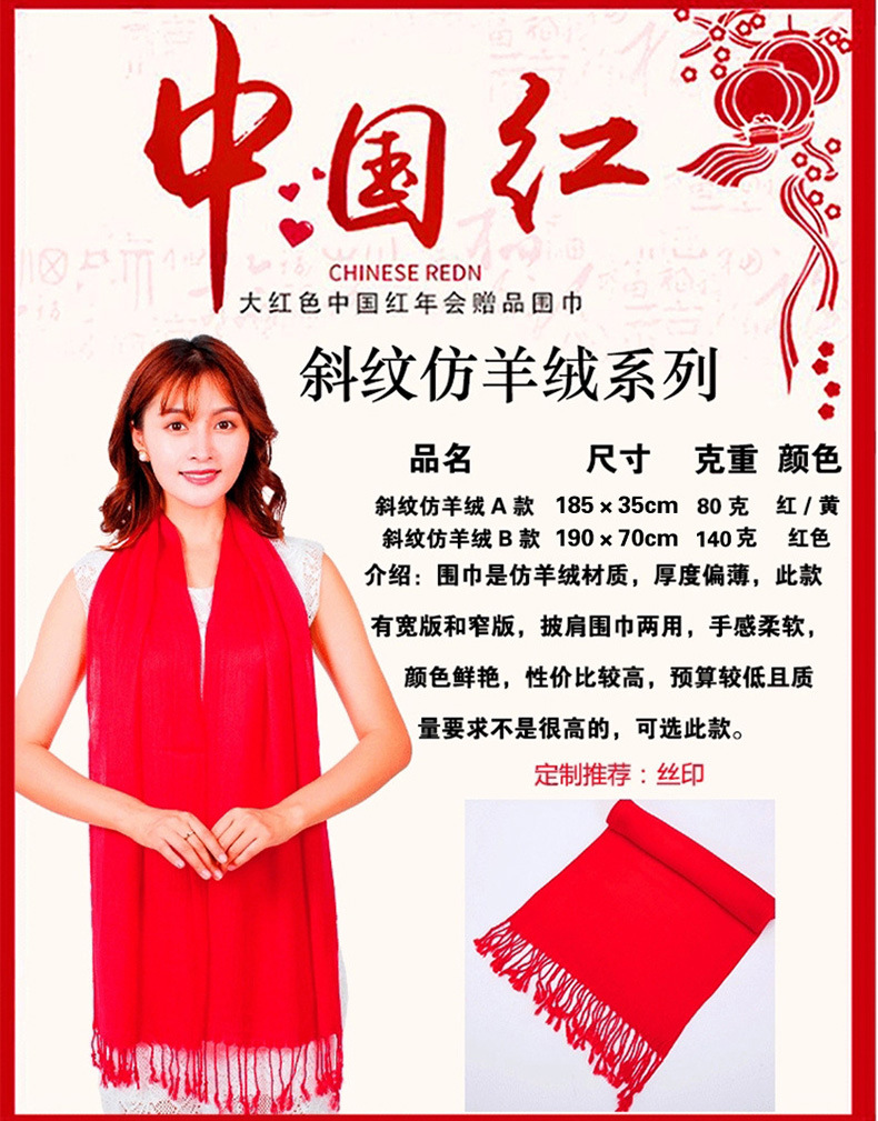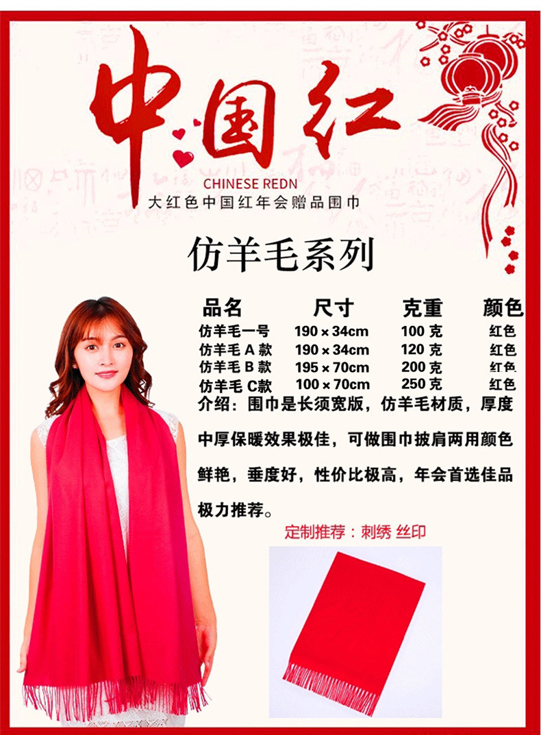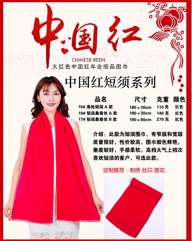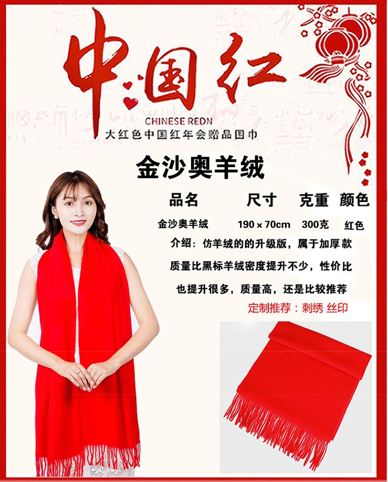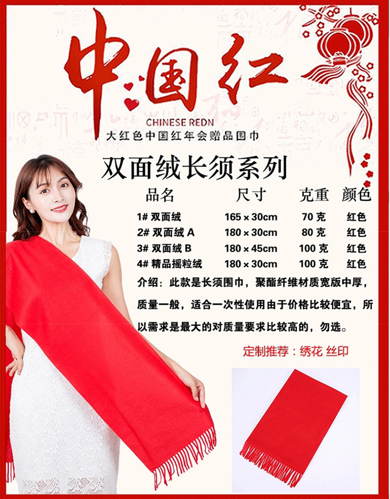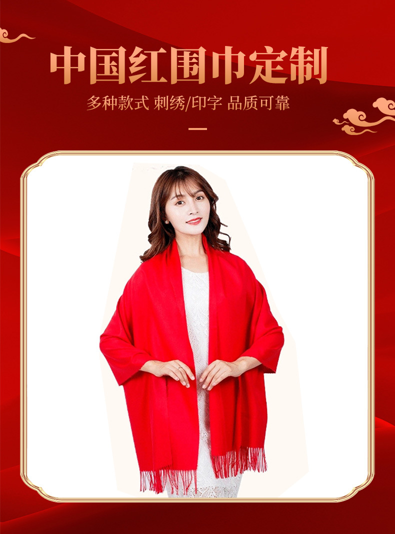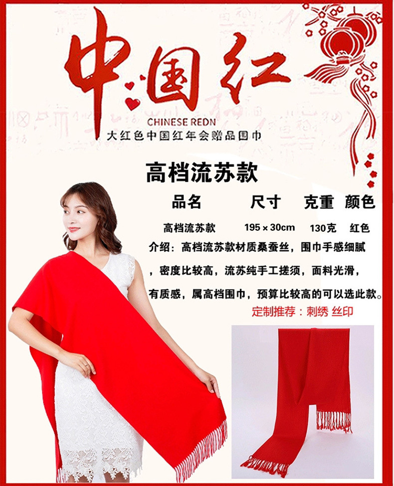 Китай Красный Крест Конференция Событие Большой красный шарф Пользовательский логотип вышивка печати подарок Студент партии шарф шаль