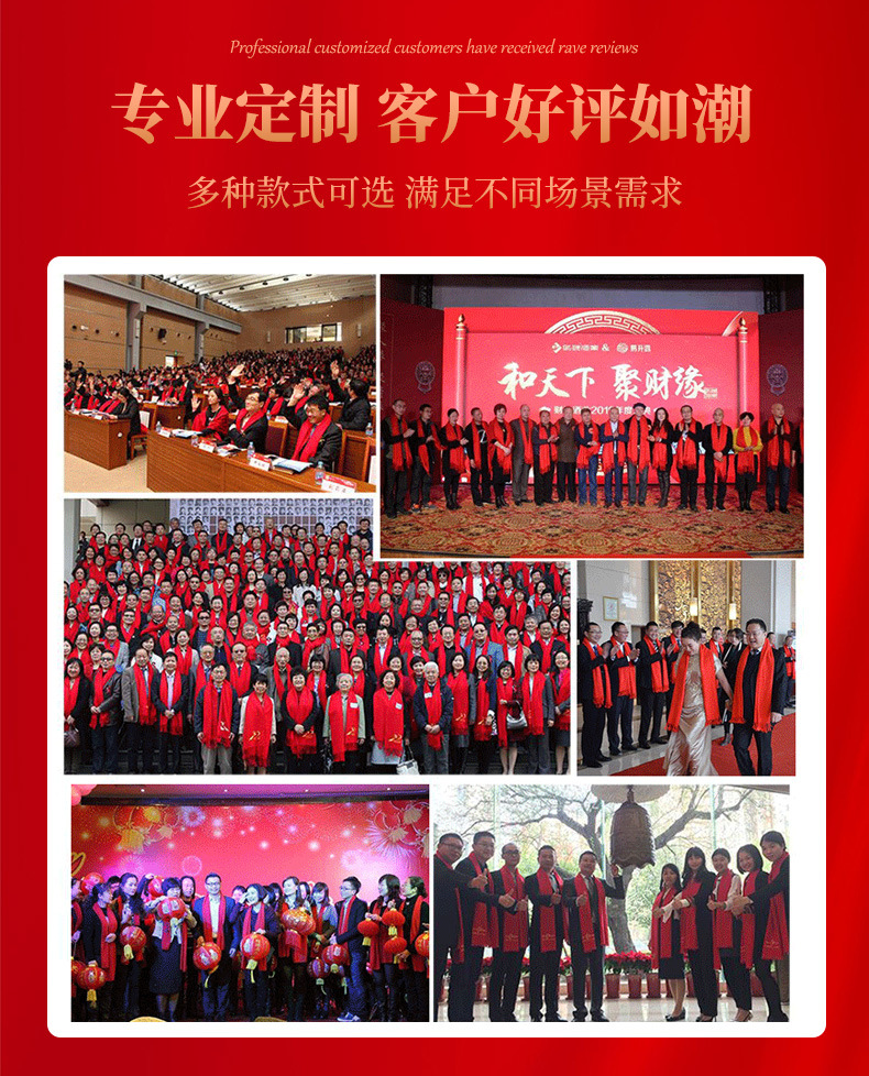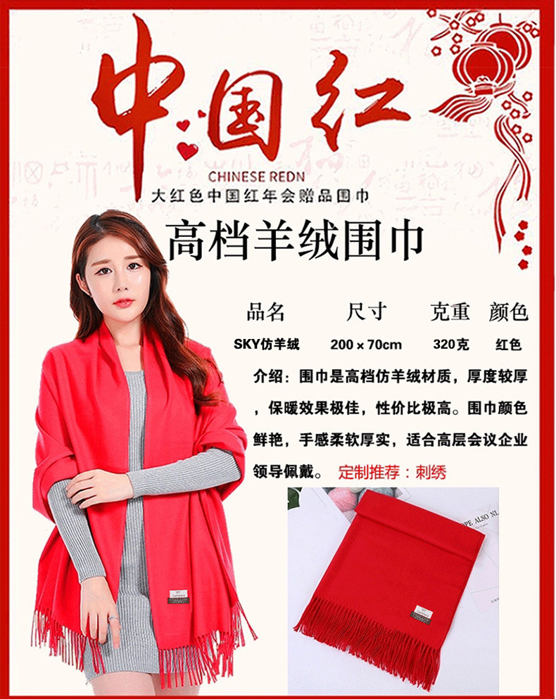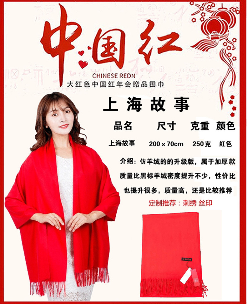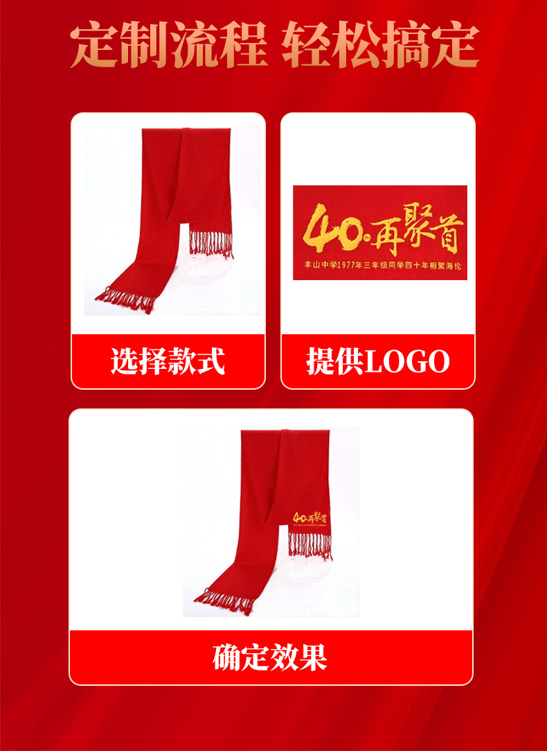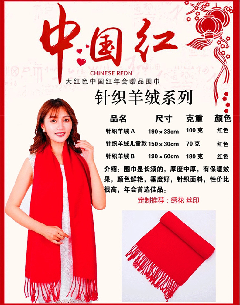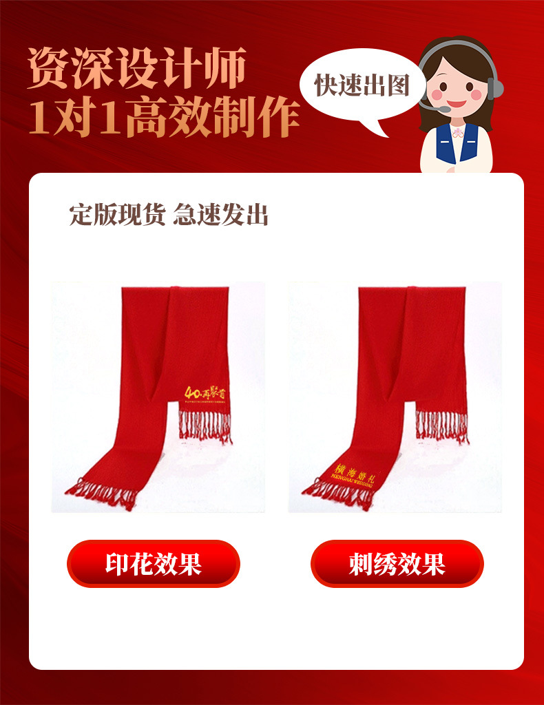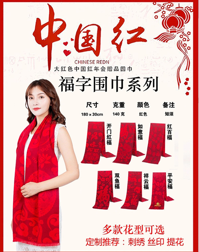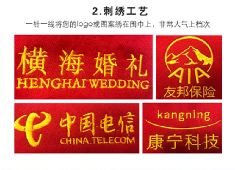 Китай Красный Крест Конференция Событие Большой красный шарф Пользовательский логотип вышивка печати подарок Студент партии шарф шаль