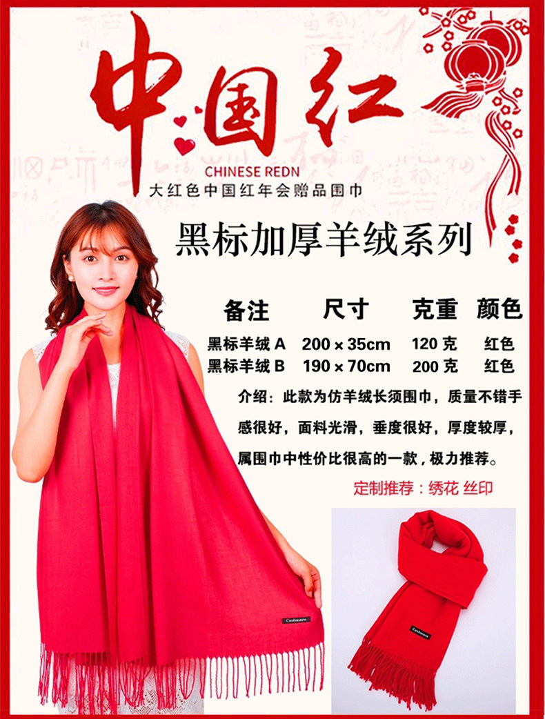 Двухсторонний бархат 165*30 см; Двухсторонний бархат А 180*30 см; Двухсторонний бархат B 180*45 см; Бутик флис 180*30 см; Трикотаж кашемир типа А 190*33см.; Трикотажная кашемировая B 190*60 см; Трикотажная детская 150*30 см; Черный стандарт кашемир А 200*35 см; Черный Стандартный кашемир B 190*70 см; Утолщённая модель Black Label C, 200*70 см; Саржа имитация кашемира A 185*35 см; Саржа имитация кашемира B 190*70 см; Имитация шерсти 190*34 см; Имитация шерсти А 190*34 см; Имитация шерсти B 195*70 см; Короткая борода из полиэстера типа А 180*30см; Укороченный бородатый шелк А 180*30 см; Короткая борода тутового шелка типа Б 190*60см; Открыть дверь Хунфу 180*30 см; Руйи Фу 180*30 см; Красный Бай Фу 180*30 см; Шарф из парчового материала с оленем, 200*70; Сянюнь Фу 180*30 см; Пинг Ан Фу 180*30 см; SKY имитация кашемира 190*70 см; Кисточка Высококачественная 195*30 см; Шанхайская история 200*70 см; Кашемир 190*70 см; Высококачественная овечья пуховка 200*70 см; Двойной шелк без 170*22; Двойной шелк Борода 180*22 см; Модель из смесовой шерсти 200*70; Подарочная коробка костюм; Одиночная коробка слитка