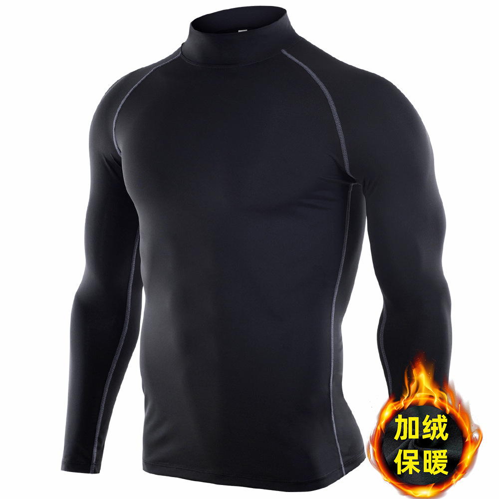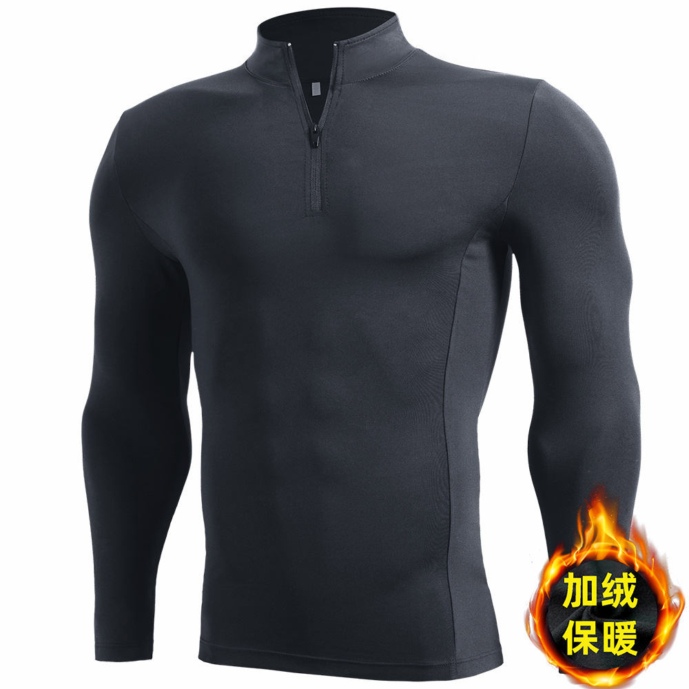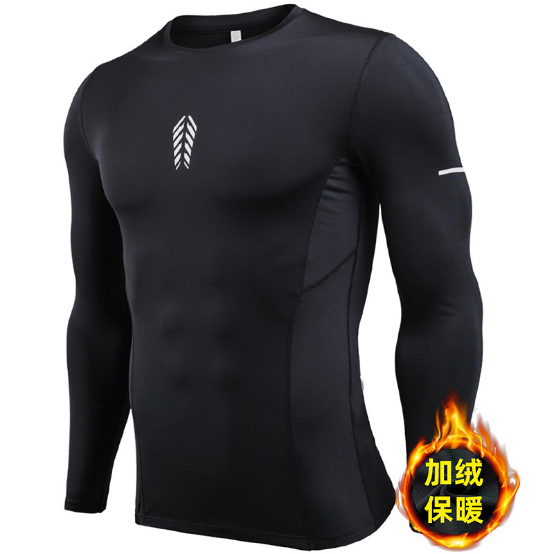 Мужская теплая флисовая спортивная одежда для фитнеса, зимняя эластичная облегающая футболка с длинным рукавом, базовый слой для тренировок и бега.