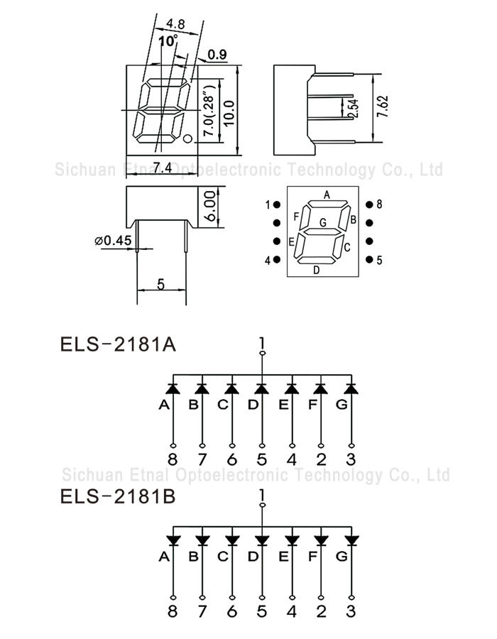 0,28 дюйма 1-разрядная цифровая трубка, общий инь, ян, изумрудно-зеленый ELS-2181AGG/ELS-2181BGG