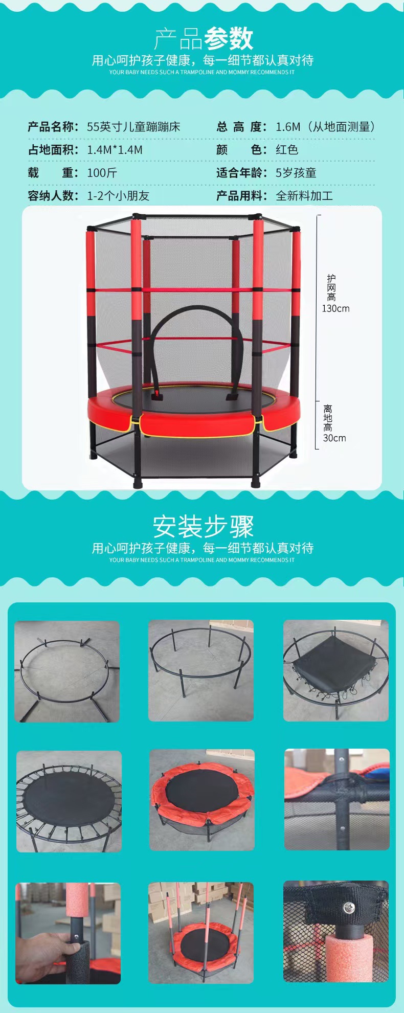 Домашнего батута детей батут небольшого Крытый с игрушкой семьи батута кровати защитного чистого младенца батута отскакивая кровать