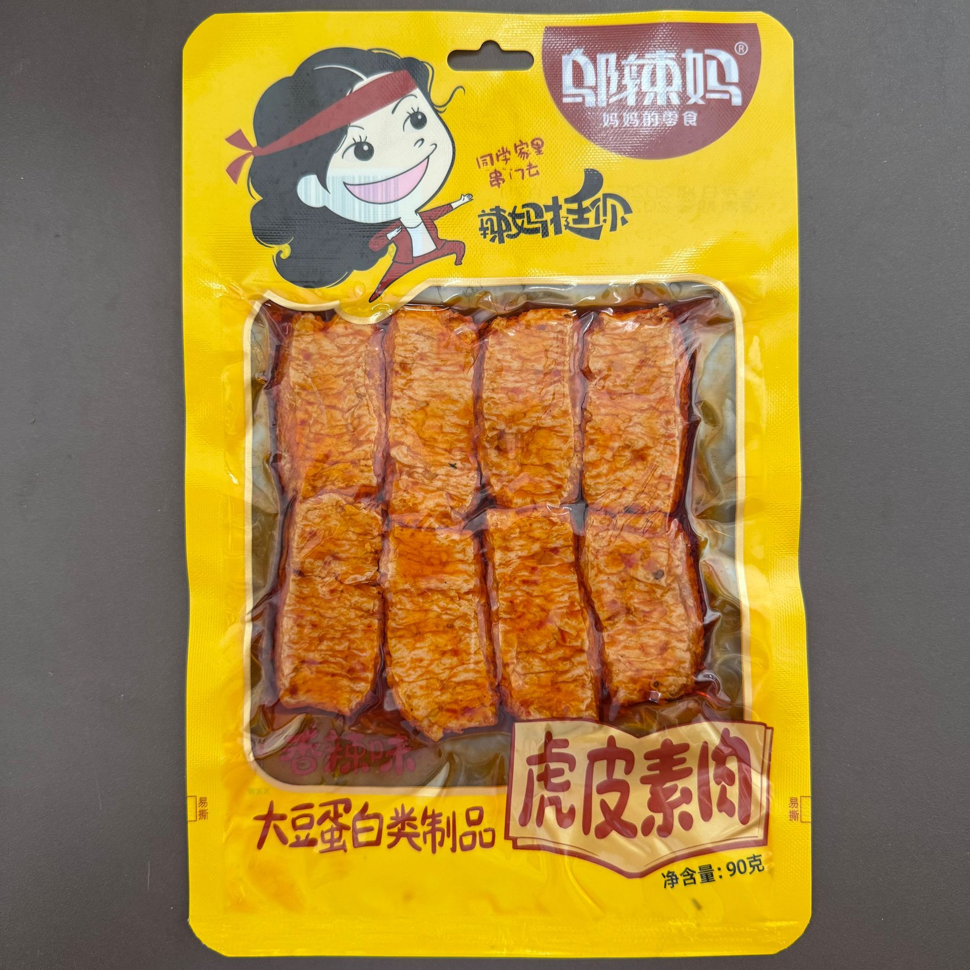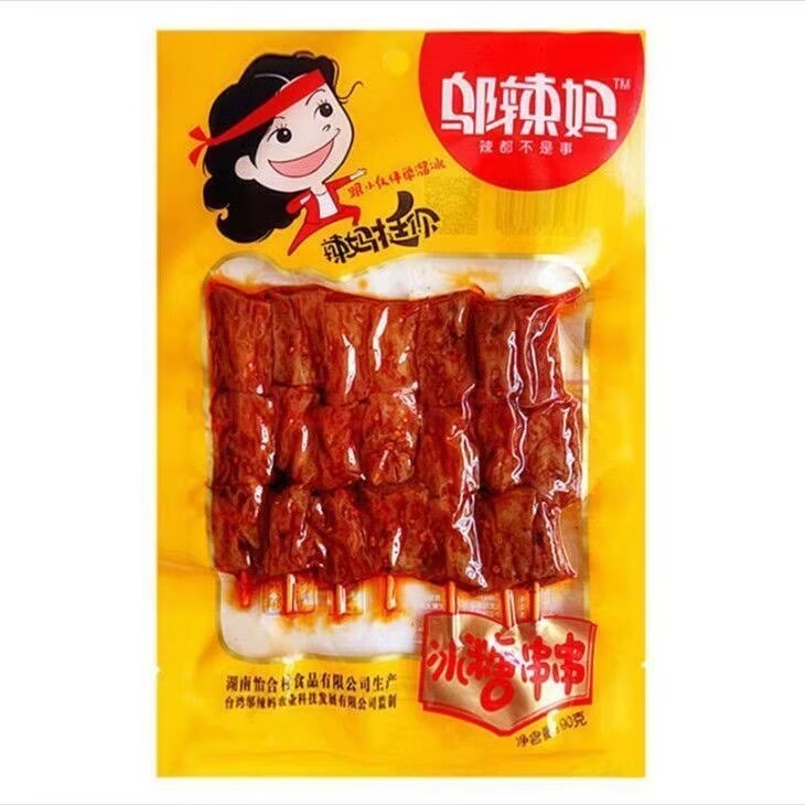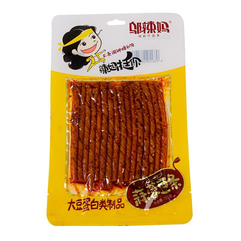 70 г острый рулет из фасоли с острой начинкой; 70 г острый рулет из фасоли с чесночным вкусом; 45 г острого хрустящего рыбного филе; 45 г острого и хрустящего филе небольшой рыбы; 100 г вегетарианского говяжьего сухожилия; 100 г чесночных палочек; 100 г острого вегетарианского стейка; 100 г вегетарианского чесночного стейка; 100 г вегетарианского стейка на углях; 80 г тушеной острой лапши; 92 г тушеной острой лапши; 90 г вегетарианских говяжьих рубцов; 90 г острой хрустящей кожи; 90 г мяса «тигровая кожа» (ранее известного как грибной тофу); 90 г вегетарианских шашлыков из баранины; 90 г шампуров из каменного сахара; 90 г маринованного сушеного перца; 85 г шариков рок-сахара; 85 г вегетарианских говяжьих шариков; 85 г шашлычной вегетарианской колбасы; 85г шампуры 100; 85г шампуры 520; 85 г сушеных ароматных орхидей; 80 г жареного сушеного тофу в корейском стиле; 80 г вегетарианских куриных шашлыков; 80 г сушеного чая с куриным соком; Вегетарианские мясные шашлыки на железной пластине 80 г.; 80 г чайного масла тофу; 108 г старомодного острого острого вкуса; 108 г старомодных острых ломтиков со вкусом чеснока; 110 г жевательного сушеного тофу; 110 г чистого сушеного тофу из мякоти; 110 г Тысячеслойного Сушёного Тофу; 110 г сушеного на дровах тофу