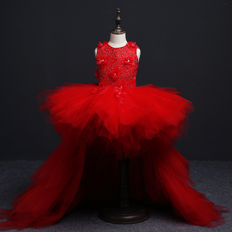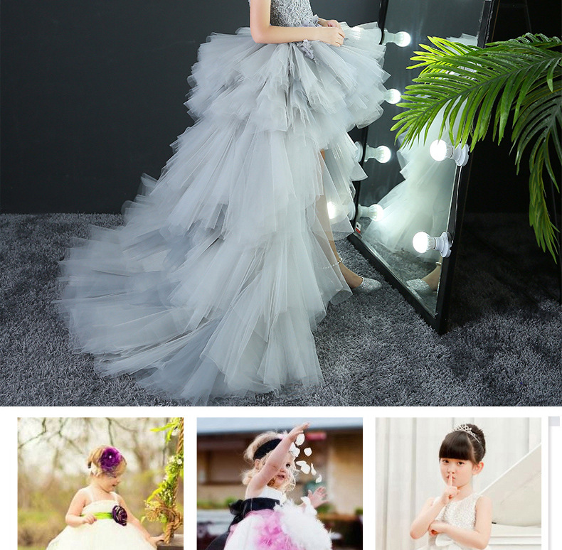 Вечернее платье для девочек Платье принцессы Серая модель Свадебное платье со шлейфом Платье-пачка Детское пианино Размер хоста