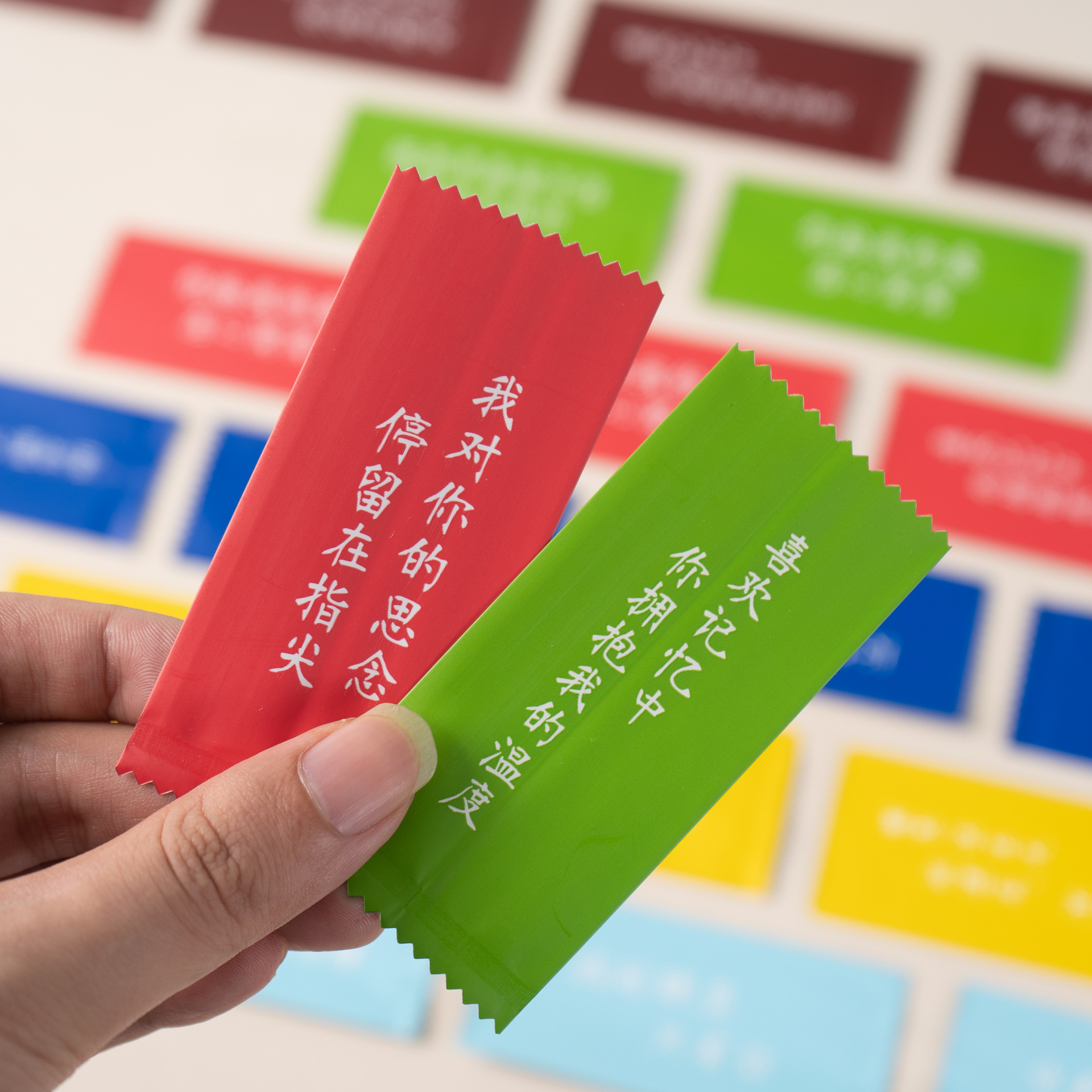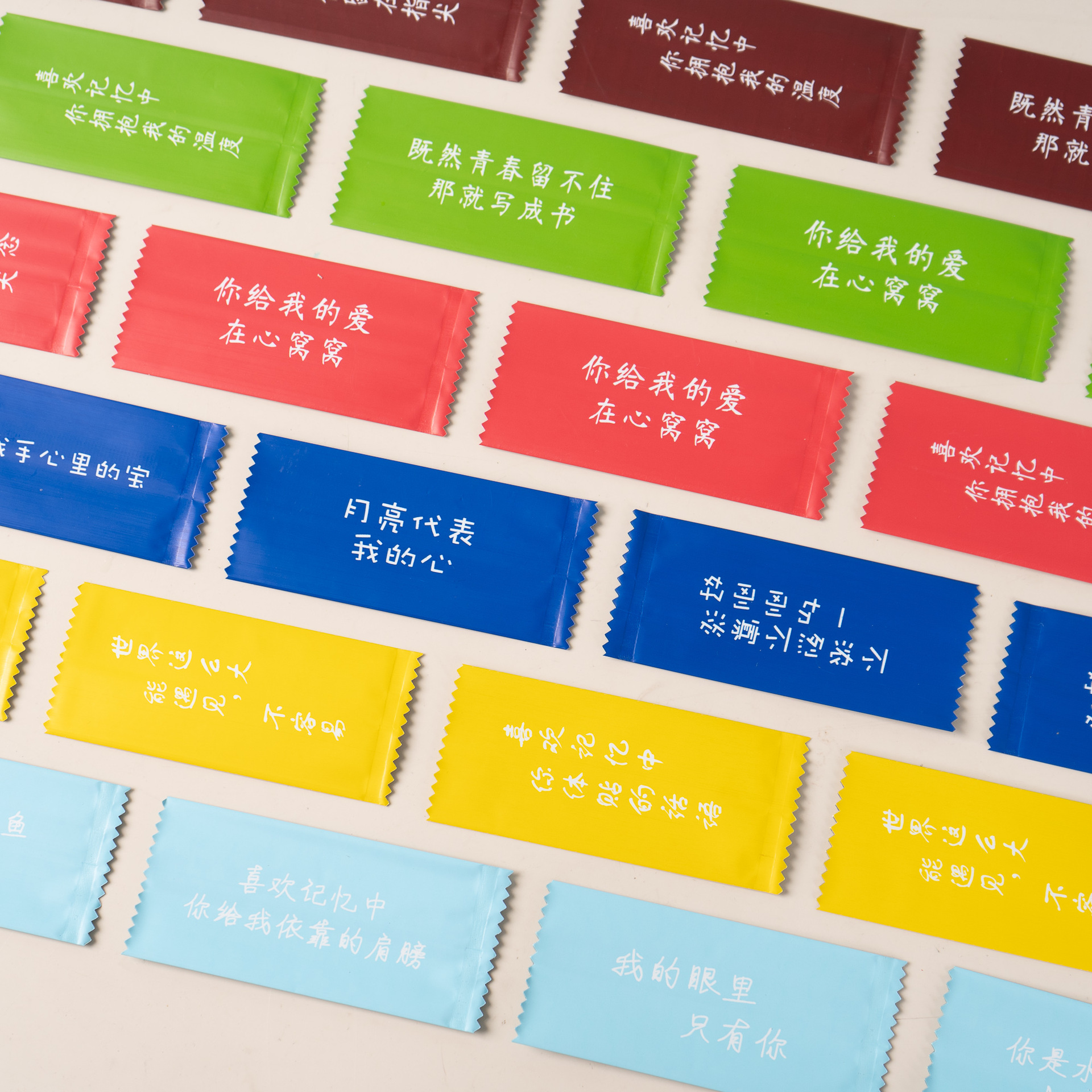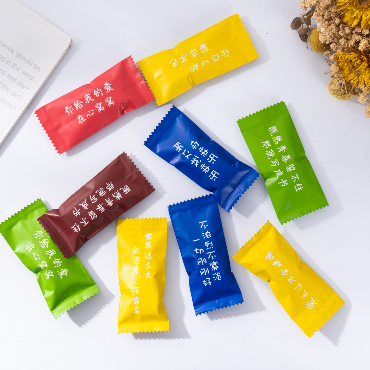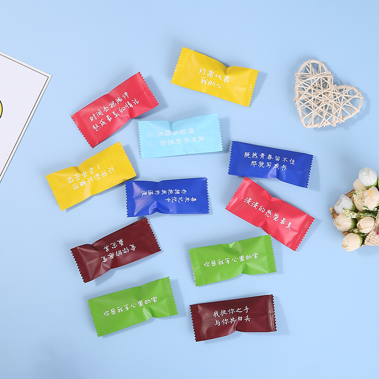 Слова любви, чтобы показать многоцветную упаковочную сумку с фруктами ириски