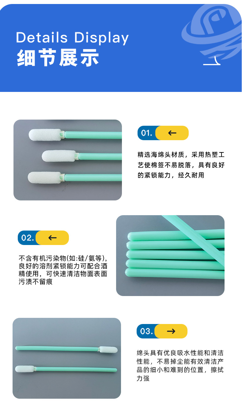 Безворсовые чистящие ватные палочки для промышленной уборки, для чистки чипов струйных принтеров и стекла, антистатические, специального назначения