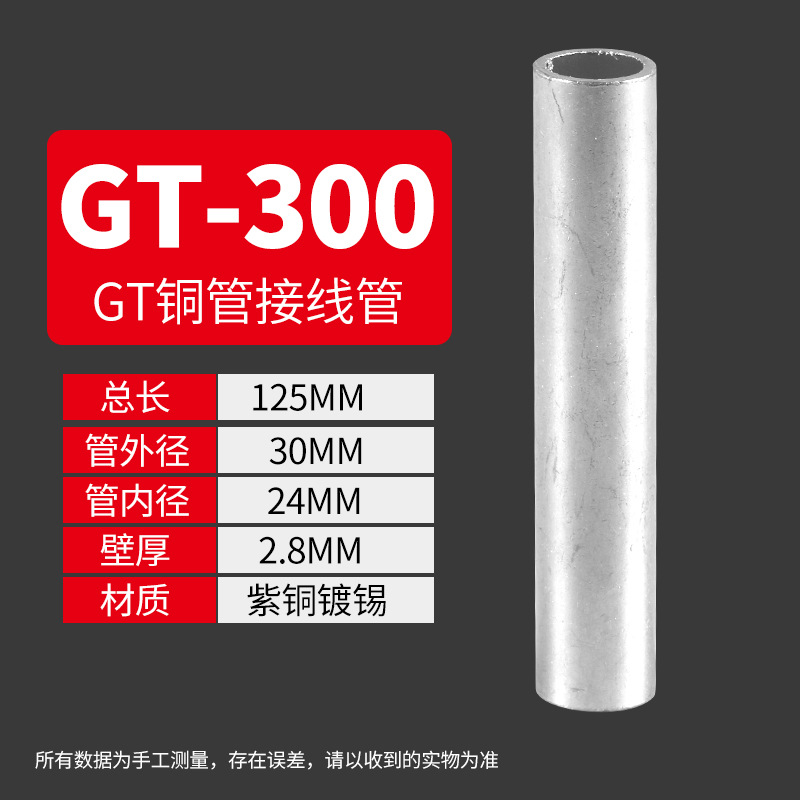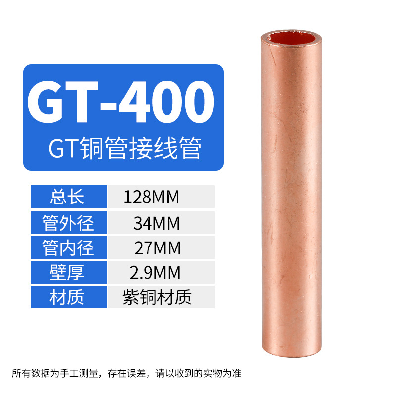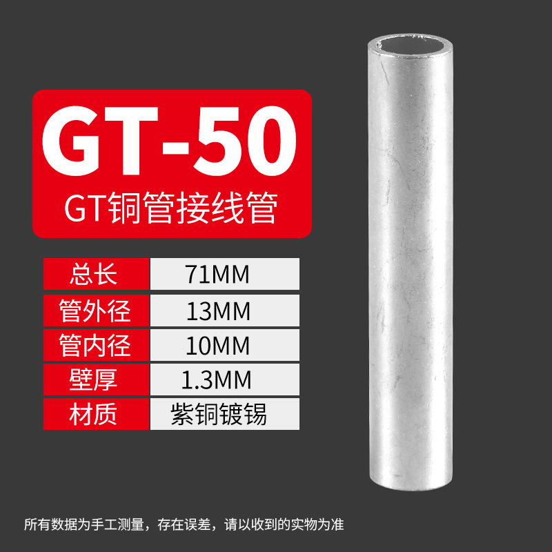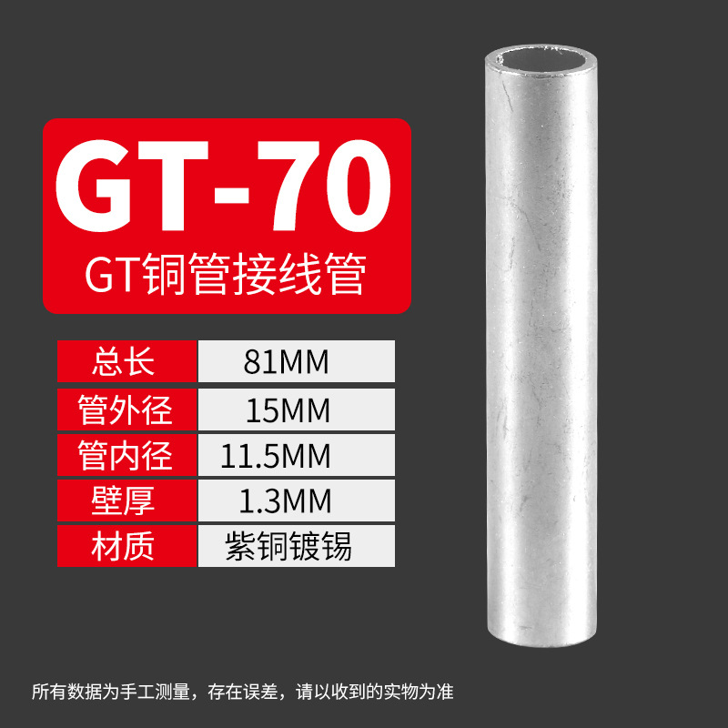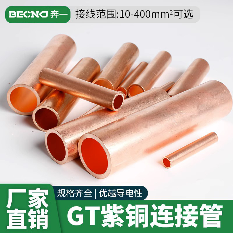 Медный соединительный трубчатый кабельный коннектор GT 10-400, прямой, луженый, для обжима проводов