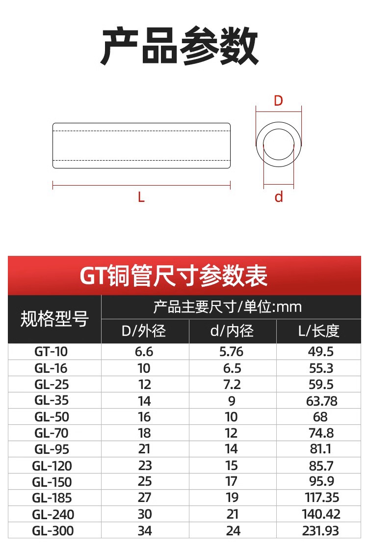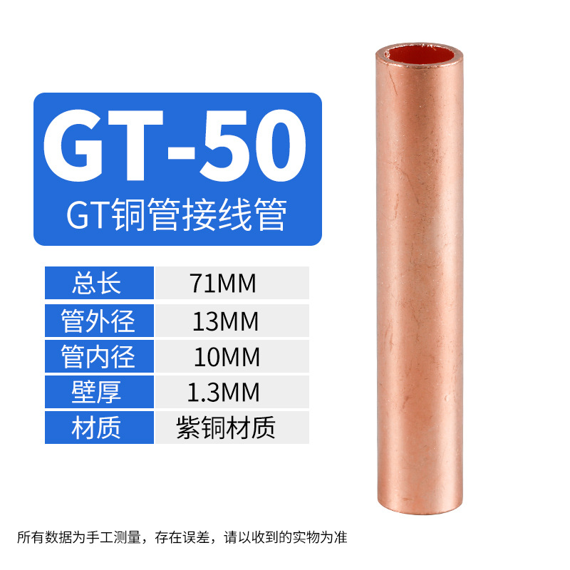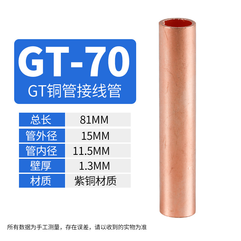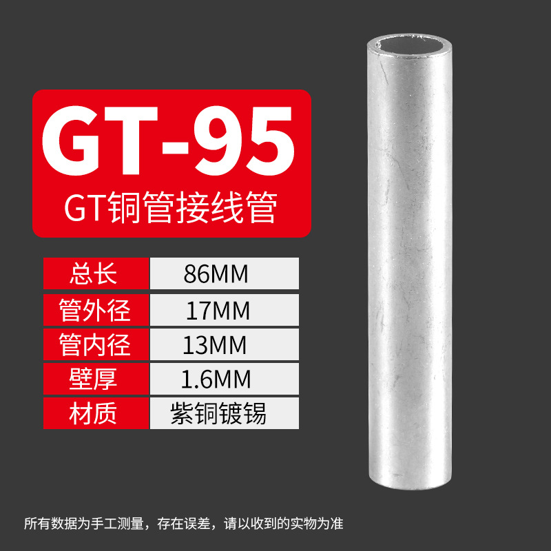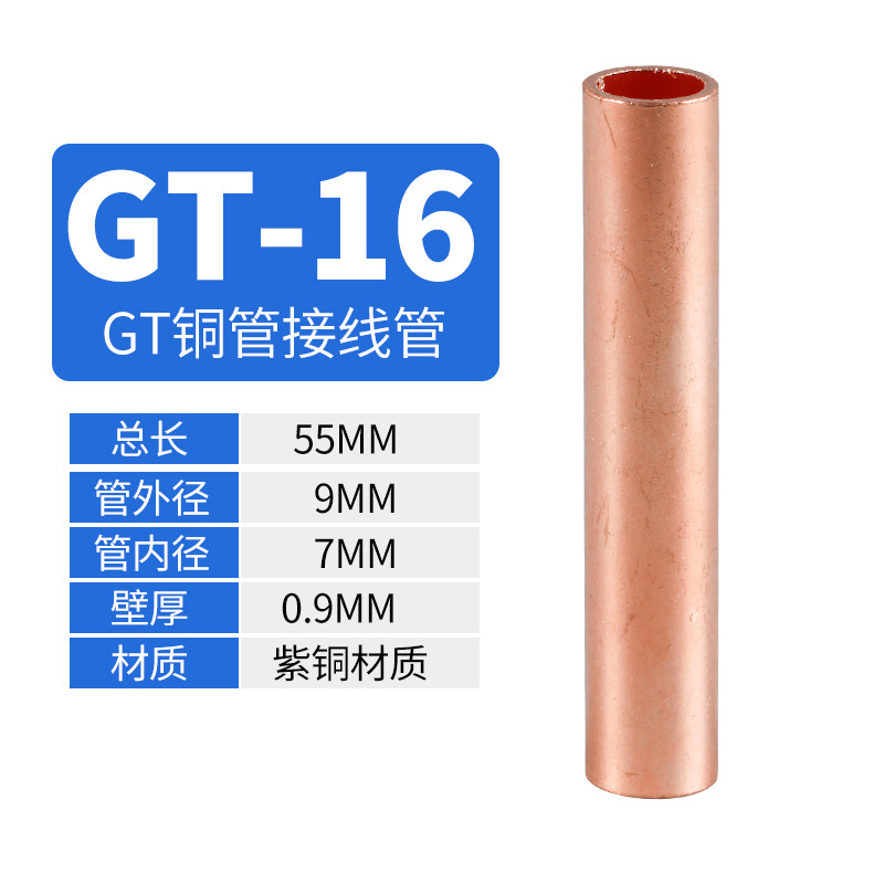 Медный соединительный трубчатый кабельный коннектор GT 10-400, прямой, луженый, для обжима проводов